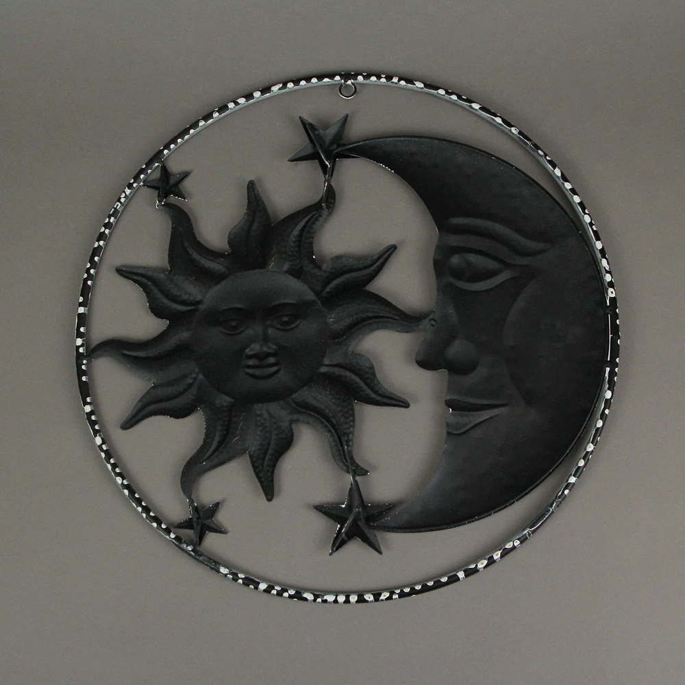 Perfect Dimensions - With a 16.5-inch diameter and 0.25-inch width, this celestial masterpiece boasts a substantial presence on any wall, indoors or outdoors. Sturdy Craftsmanship - Crafted from durable metal, this wall art features a sun, moon, and stars delicately hanging inside a minimalistic metal wire frame, ensuring longevity and artistic elegance. Artistic Patina - Its white and bronze distressed painted finish exudes a beautifully weathered appearance, creating a charming oxidized look that adds character and allure to any space. Our eBay Store About Us Add to Favorite Sellers Rustic White Metal Sun, Moon & Stars Wall Art - Celestial Hanging Decor for Indoor and Outdoor Spaces - 16.5 Inch Diameter - Radiant Cosmic Harmony and Elegance Perfect Dimensions - With a 16.5-inch diameter and 0.25-inch width, this celestial masterpiece boasts a substantial presence on any wall, indoors or outdoors. Sturdy Craftsmanship - Crafted from durable metal, this wall art features a sun, moon, and stars delicately hanging inside a minimalistic metal wire frame, ensuring longevity and artistic elegance. Artistic Patina - Its white and bronze distressed painted finish exudes a beautifully weathered appearance, creating a charming oxidized look that adds character and allure to any space. Effortless Installation - Designed for convenience, this wall decor easily mounts on any indoor or outdoor wall, garden fence, or patio rail. Its built-in metal ring mounting hanger at the top ensures secure and straightforward installation. Celestial Charm - Infused with celestial style, this piece brings visual excitement and artful inspiration to any home decor setting. Its harmonious blend of sun, moon, and stars captures the essence of cosmic allure, transforming your space into a celestial sanctuary. Create a celestial haven in your indoor or outdoor space with this charming wall hanging, featuring a smiling sun and moon encircled by stars. Crafted from durable metal, this sculpture adds a delightful touch of celestial allure with its distressed white and bronze finish, evoking a captivating, weathered aesthetic. The swirling sunrays lend a sense of motion, while the stars induce a calming atmosphere. Encased within a simple round metal frame, this 16.5-inch diameter, 0.25-inch wide wall art exudes elegance and grace. This versatile decoration complements any focal wall indoors and warmly welcomes guests outside near the front entry. Hang it by the poolside, on the patio, or affix it to a fence, breathing life into your yard or garden. Its celestial motif brings a harmonious balance, infusing your space with personality, character, and artful inspiration. Whether illuminating your interior or enhancing your exterior, this celestial wall decor not only brings aesthetic pleasure but also captures the essence of serene cosmic beauty. Embrace the rustic charm and let this celestial masterpiece elevate the ambiance of your home or garden with its timeless allure. Product Details Color Gray Height 16.5 Length 16.5 Weight 1.05 LB