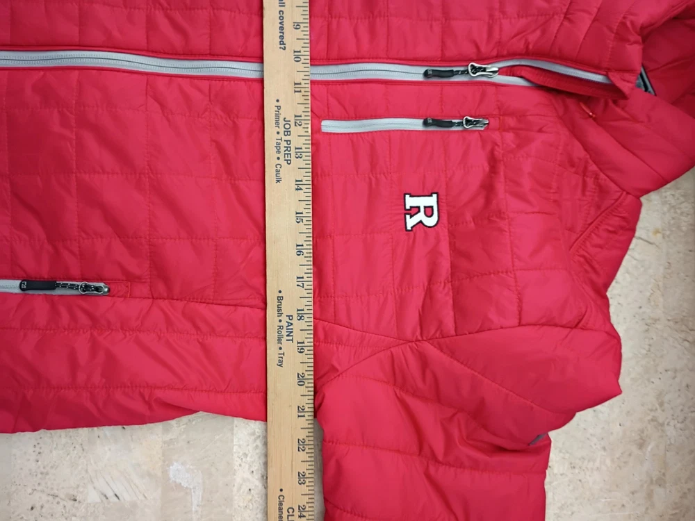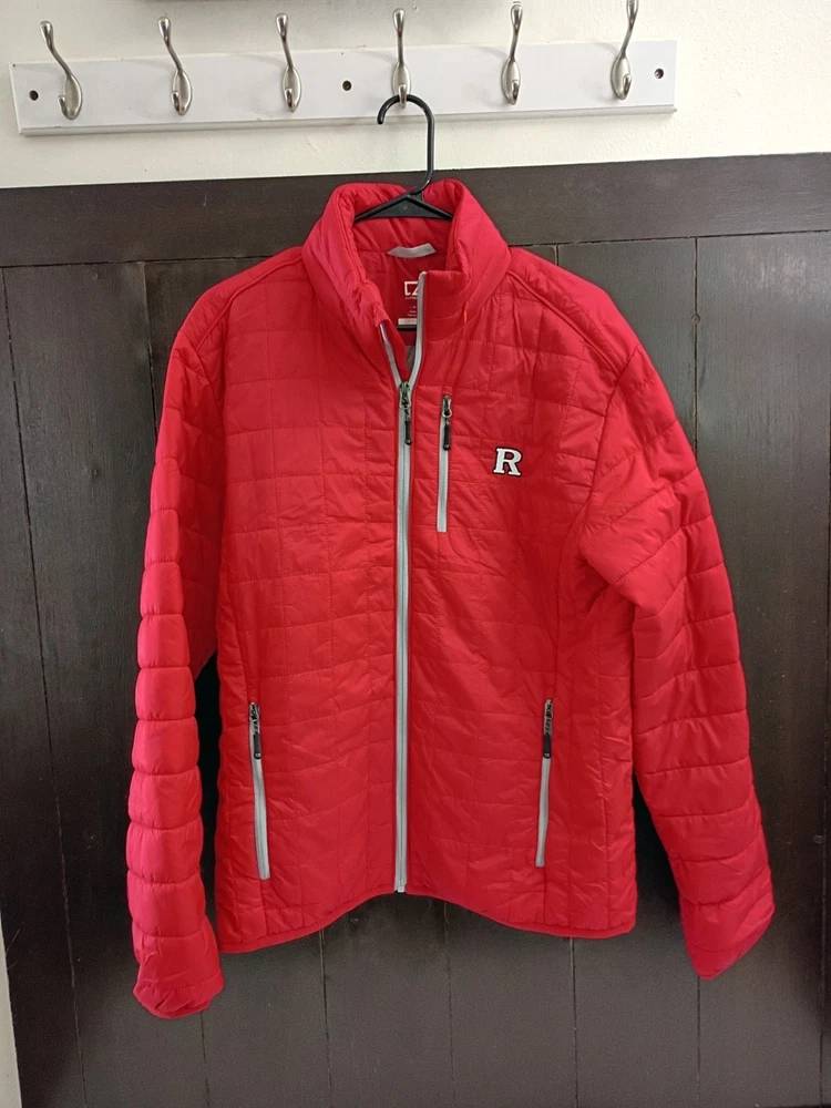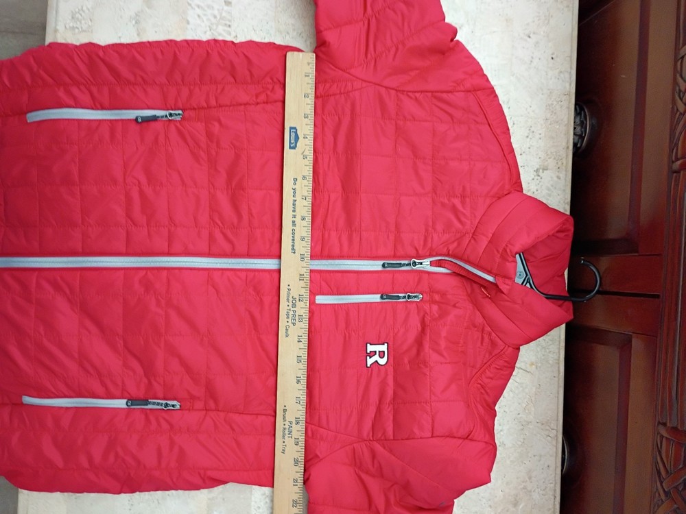 Represent your Rutgers Scarlet Knights with pride in this Cutter & Buck Rainier Full-Zip Vest. This Rutgers Scarlet Knights vest is fully lined and insulated with lightweight Primaloft fill, so you'll stay warm and comfortable even on the coldest game days. This vest is perfect for layering on game day or any day you want to show your Scarlet Knights pride. Cutter & Buck rubber patch at back neck Machine wash Officially licensed Zippered front and chest pockets WeatherTec technology is crafted with lightweight, wind- and water-resistant fabric Embroidered graphics Brand: Cutter & Buck Full Zip Material: 100% Nylon Insulated Mock neck Fully lined Lightweight Primaloft fill Square pattern quilting Elastic bound armholes and bottom hem Imported Cutter & Buck rubber patch at back neck Machine wash Officially licensed Zippered front and chest pockets WeatherTec technology is crafted with lightweight, wind- and water-resistant fabric Embroidered graphics Brand: Cutter & Buck Full Zip Material: 100% Nylon Insulated Mock neck Fully lined Lightweight Primaloft fill Square pattern quilting Elastic bound armholes and bottom hem Imported Size M Excellent Pre-owned Condition