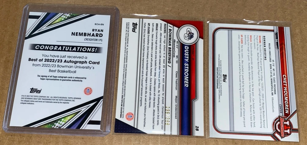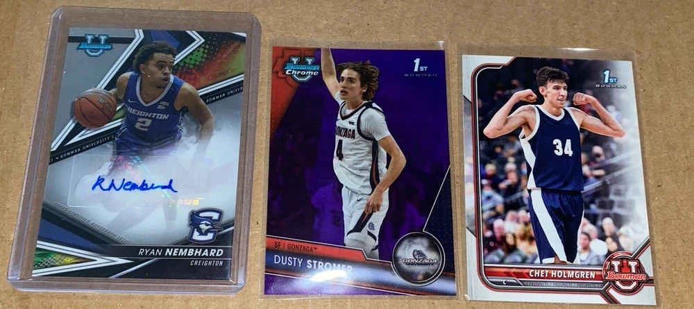 Ryan Nembhard Bowman U Auto + Dusty Stromer 1st Purple /399 + Chet Holmgren 1st