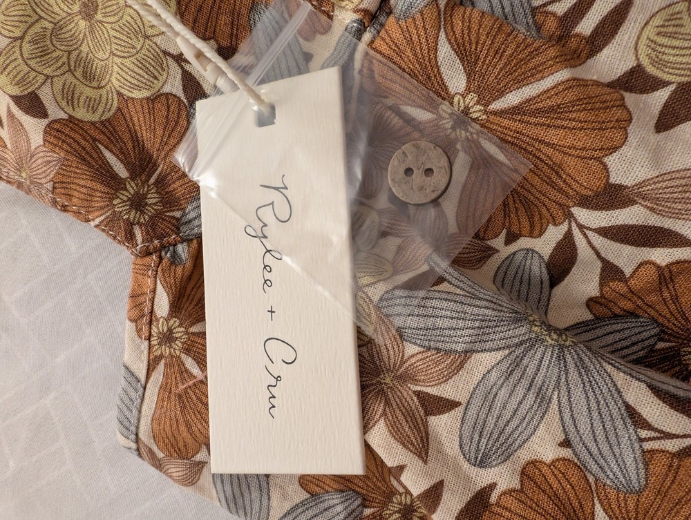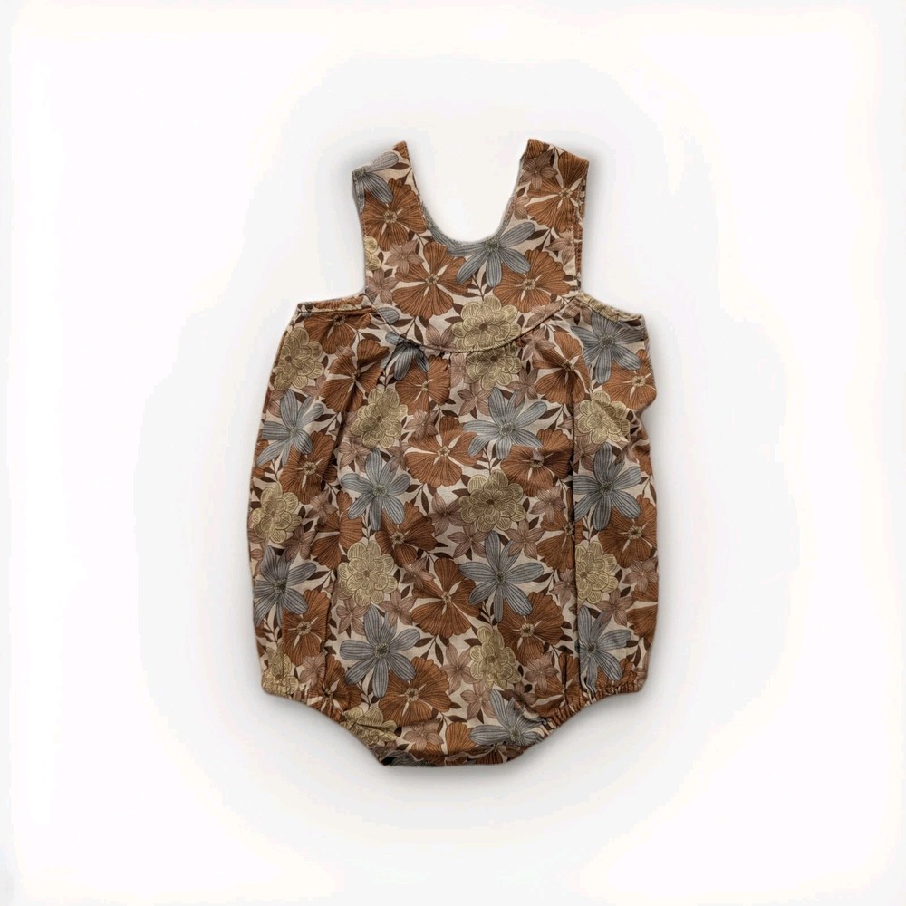 Rylee + Cru Floral Sleeveless Cotton Romper Brown Beige Gray White 3-6 Months