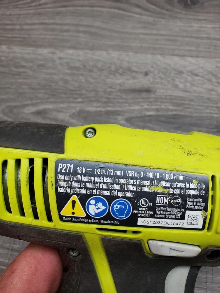 Ryobi 18v Drill 1/2 P271. Condition is Used. Shipped with USPS Ground Advantage.