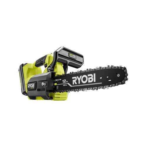 Ryobi 36V 12” 30cm HP™ Brushless Top Handle Chainsaw 4.0Ah Kit R36XCHS14 Features Kit includes: 36V HP Brushless 12” (30cm) Top Handle Chainsaw, 36V 4.0Ah Battery and 36V 1.7A Charger 22.5m/s chain speed Compact and lightweight top handle design Inertia-activated chain brake Adjustable and automatic oiling system Use the 36V HP Brushless 12” (30cm) Top Handle Chainsaw to cut down small trees, cut up logs for firewood or prune large trees. This Kit also includes a 36V 4.0Ah Battery and 36V 1.7A Charger. The 36V Chainsaw’s powerful HP brushless motor generates petrol-equivalent performance without annoying pull cords, chokes or petrol top-ups to worry about. Its 12” bar and maximum 22.5m/s chain speed makes fast cuts into wood up to 250mm in diameter. It’s also a great tool to pack for camping trips and 4WD-ing. The compact and lightweight top handle design helps reduce user fatigue and makes it easier to cut branches at challenging angles. The inertia-activated chain brake protects users from kickback scenarios. Use the hanging ring for easy connection to a harness or storage. The adjustable and automatic oiling system disperses chain and bar oil to keep the bar lubricated and operating smoothly. The amount of chain and bar oil used can be adjusted for the type of wood being cut. After use, pack away the Chainsaw in its own hard case that provides protection during transport and storage. The 36V Chainsaw is part of RYOBI‘s HP series of tools that utilise advanced technologies, like brushless motors that deliver higher performance, extended battery runtimes and longer motor life. These tools are ideal for tough operating conditions and larger gardens with mature plants. They also have superior ergonomics for a premium user experience. Use the 36V 4.0Ah Battery to power all RYOBI 36V Garden tools including blowers, line trimmers and lawn mowers. Recharge any RYOBI 36V Battery with the included 36V 1.7A Charger. It has a detailed LED display for accurate battery readings. Dimensions Width Height Length Product 570mm 210mm 225mm Package 220mm 350mm 250mm Weight Easy To Carry Total Weight 3.7kg Specifications Model Name Ryobi 36V HP™ Brushless 12” (30cm) Top Handle Chainsaw 4.0Ah Kit R36XCHS14 Model Number R36XCHS14 Corded (Yes/No) No Chain size (mm) 305 Charger Included (Yes/No) Yes Cordless (Yes/No) Yes Battery Voltage (volts) 36 Batteries Included (Yes/No) Yes Chain Specification 12” (305mm), 45 Drive Links, 3/8LP, 0.043” Gauge Listing and template services provided by inkFrog