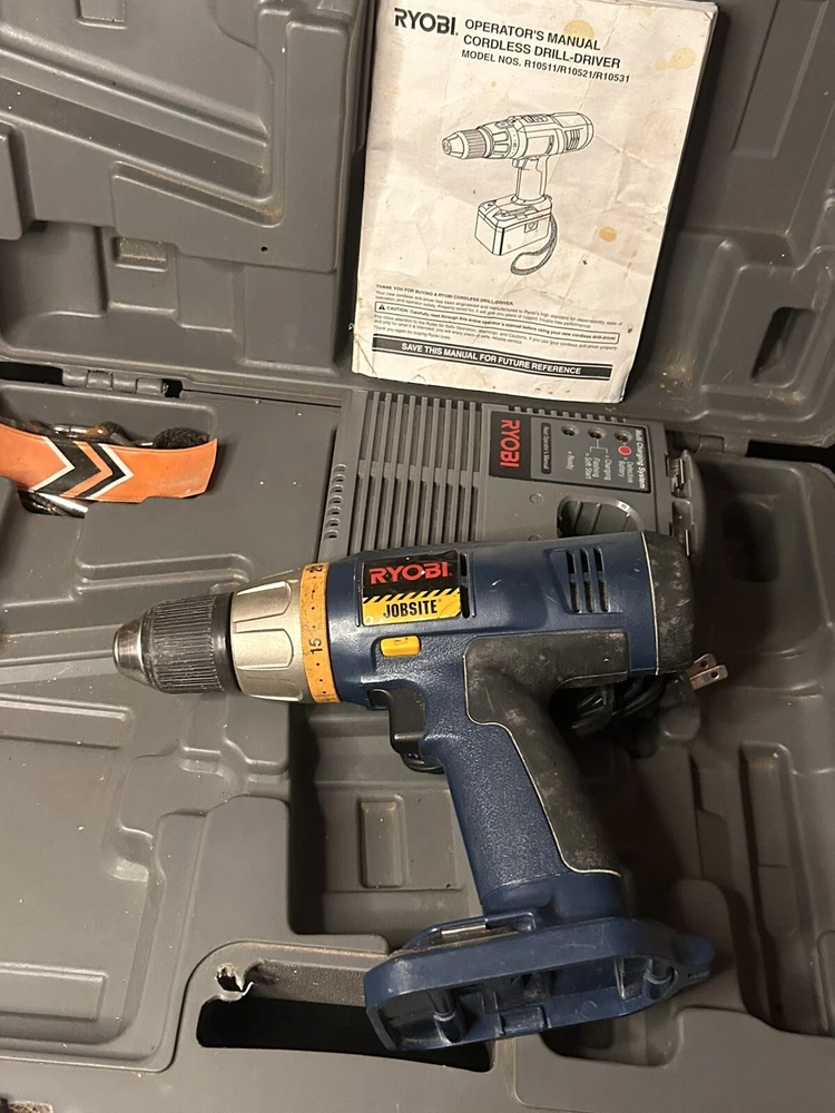 The Ryobi Cordless Drill/Driver 3/8” Model R-10521 is a versatile power tool that does not include a battery but comes with a manual, charger, and a case for convenient storage and transportation. This drill is suitable for various tasks in the home or workshop, offering the user flexibility and ease of use. With the Ryobi brand known for quality and reliability in power tools, this cordless drill/driver is a valuable addition to any tool collection.NO BATTERY use with battery pack 1400655/1400671