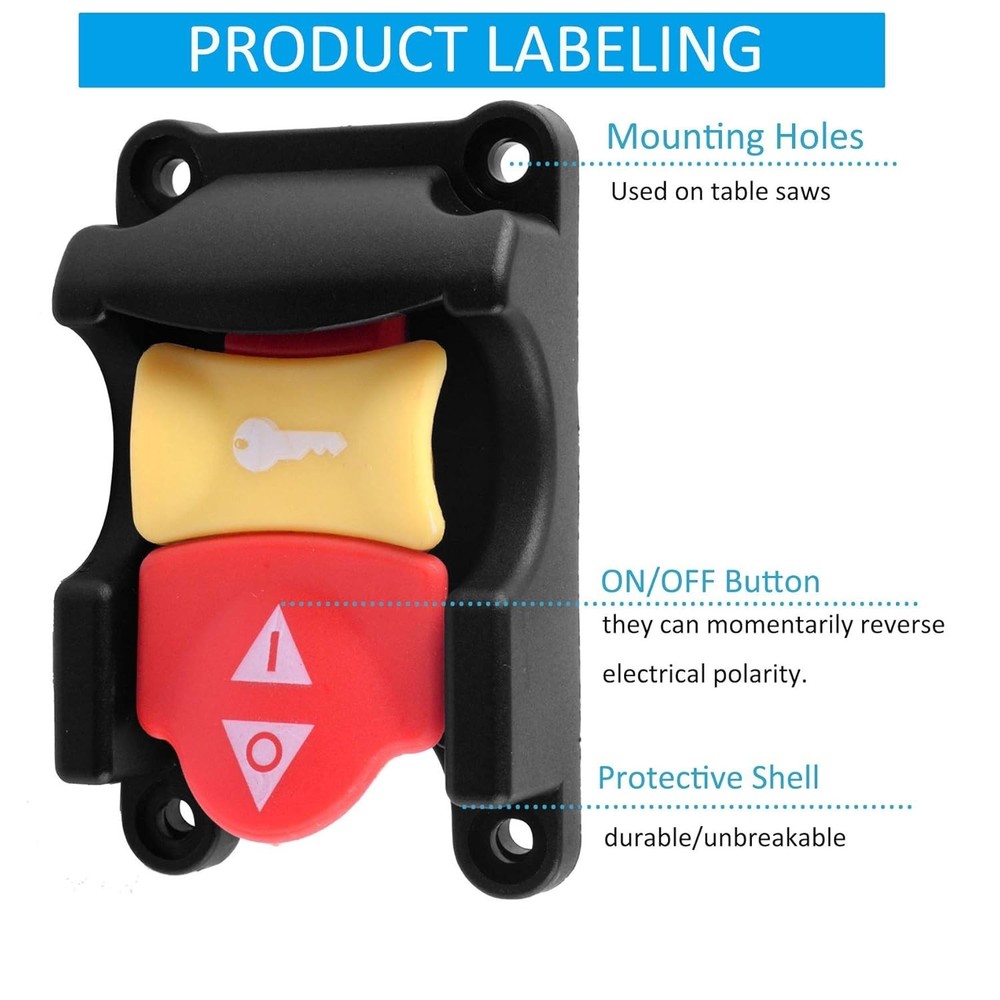 BRAND NEW ✅ 【 TABLE SAW SWITCH】: The Replacement Paddle Switch for Table Saw,compatible with Ry-obi Table Saws. ✅ 【 FUNCTION】: Removalbe safety key to lock the switch prevents from accidental operations. Large paddle for emergency stop. ✅ 【 PREMIUM QUALITY】: This safety locking switch is made of high quality durable plastic. They are approved by UL, TUV, CSA, CE, ETL standards and they fit most of the power tools on the market. ✅ 【 COMPATIBLE WITH】: Table saw switch is compatible with Ryobi BS1001SV 10" Band Saw, BS902 9" Band Saw, BS903 9" Band Saw,BTS15 10" Table Saw, BTS20 10" Portable Table Saw, BTS20R 10" Table Saw, BTS20R-1 10" Table Saw, BTS21 10" Table Saw ✅ 【 NOTICE】: The part is not sponsored or endorsed by, or affiliated with the brands it fits, including Ryo-bi. THANK YOU