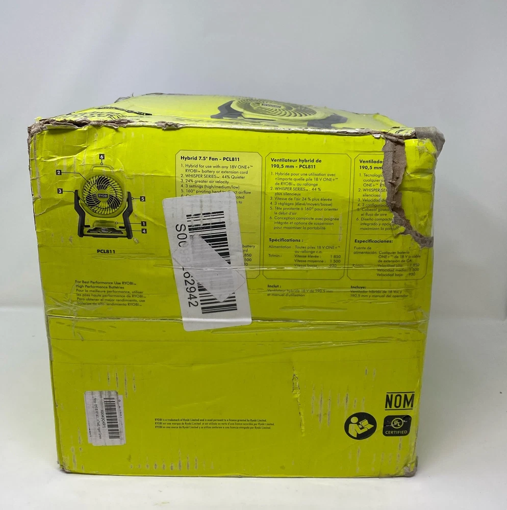 Condition: New See photos for full visual reference Model: Ryobi ONE+ 18V 7.5" Hybrid Whisper Series Fan (Tool Only) - Hyper Green, 3-Speed At Unturned, we were shocked to discover how many perfectly functional returns were being wasted. That's why we made it our mission to offer these e-commerce returns—often overlooked and discarded—at unbeatable prices. We carefully inspect and test all our products to ensure quality and accurately describe their condition. However, if you receive an item that does not match the description or meet expectations, please reach out, and we will make it right!