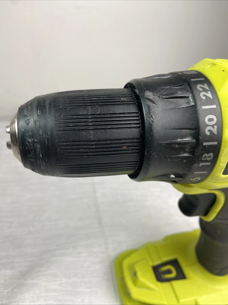 Ryobi P215 18-Volt Lithium-Ion Cordless 1/2 in Drill (BARE TOOL ONLY). No battery. Tested, works. Has some scuffs and scratches from normal use. See pictures for more details