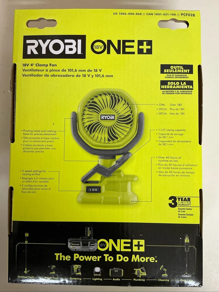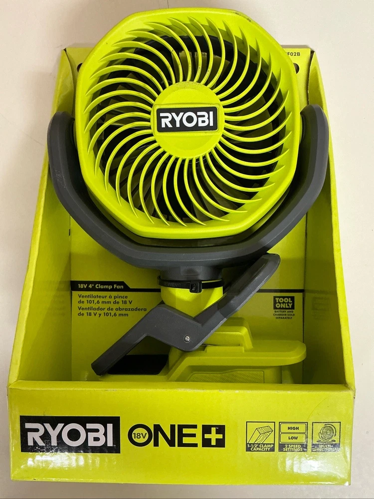 RYOBI ONE+ 18V Cordless 4 in. Clamp Fan (Tool Only) PCF02 Condition: New Is new never been opened. Please see pictures for better idea on physical condition. Tool Only (No battery or charger included)