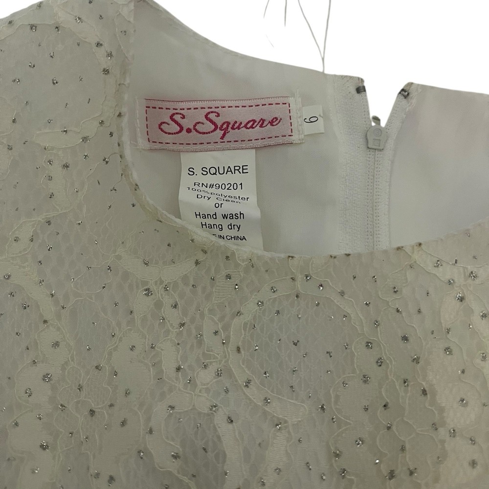 The S. Square Girls Dress in size 6 is a beautifully designed white lacy dress perfect for any young girl. With a fit and flare style and knee-length hem, this dress is both stylish and practical for various occasions. The S Square brand ensures quality and attention to detail, making this dress a lovely addition to any girl's wardrobe.