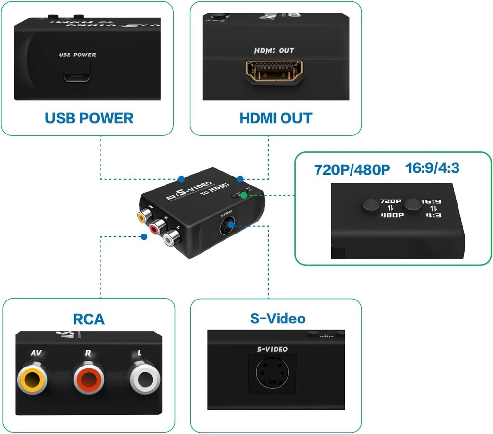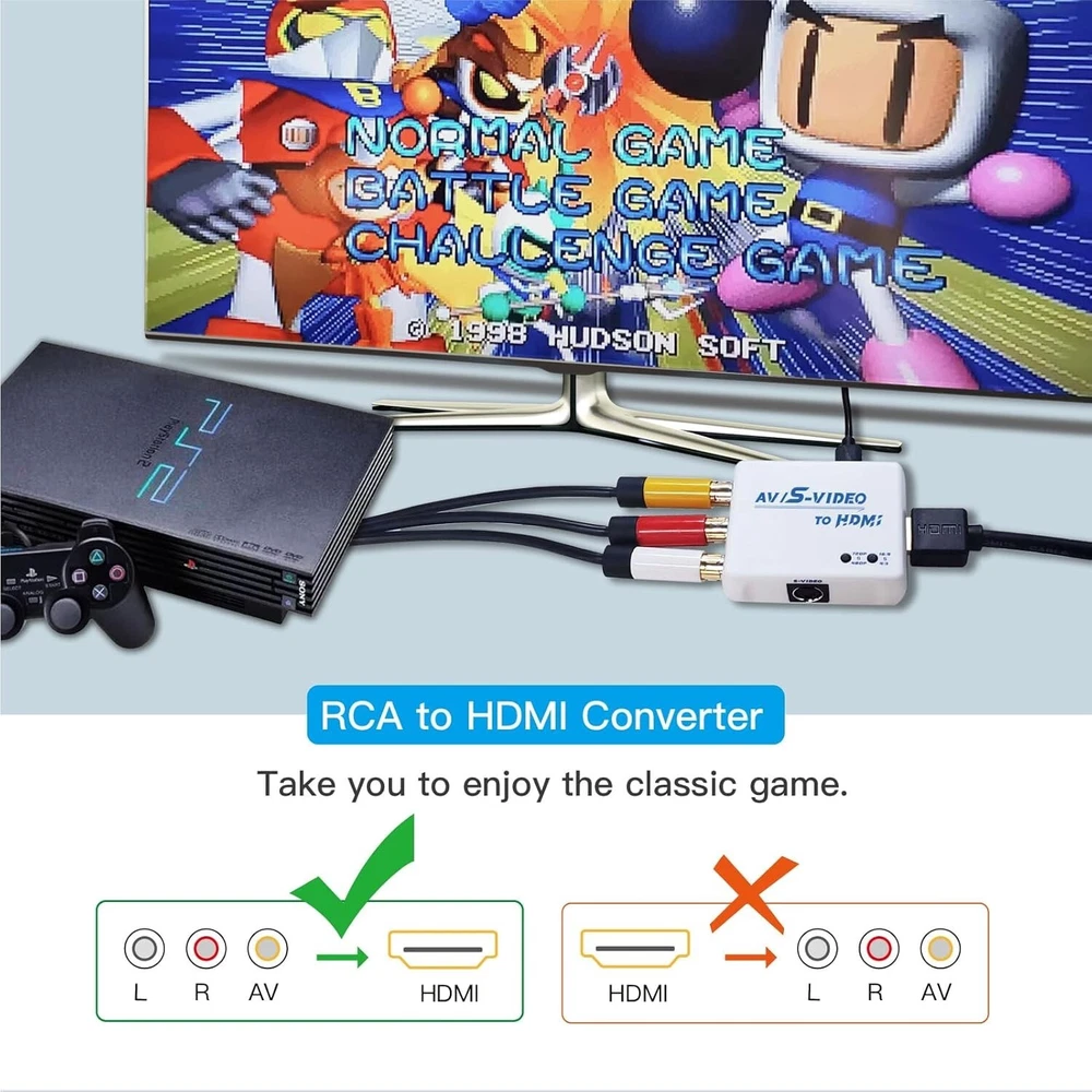 ✅ Brand New & High Quality ✅ Fast Shipping from Trusted Supplier ✅ 100% Customer Satisfaction Guarantee White 【S Video to HDMI Converter】Video processing by the S video signal source output, HDMI resolution 720P/480P or screen 16:9/4:3 ratio, display in HDTV/monitor,clear picture is so simple 【RCA to HDMI Converter】Converts analog RCA composite (Yellow,White, Red)Output HDMI resolution 720P/480P or Screen 16:9/4:3 ratio to display on HDTV/Monitor. Transfer the picture from your old device to HDTV and evoke your childhood memories 【Plug and Play】Plug and play, easy to operate, no need to install driver, low latency, clear and stable picture, no lag in playing games 【Wide Compatibility】Supports many old game machines, (such as NES,SNES, N64, GC,FC,PS1,PS2,PS3,MD1-3,SS,DC…), XBOX,VHS,DVD, VCD, etc 【Attention & Package】Please ensure to connect this AV/Svdieo to hdmi converter to power source to make it work. Package include: AV/S-Video to HDMI Converter*1, usb power cable(adapter not included)*1, Quick start guide*1 Black S Video to HDMI Converter: Video processing by the S Video signal source output, HDMI 720P/480P resolution or 16:9/4:3 screen ratio, display on HDTV/monitor, clear image is so simple RCA to HDMI Converter: Converts an analog RCA composite (yellow, white, red) to HDMI 720P/480P resolution output or 16:9/4:3 aspect ratio for display on HDTV/monitor. Transfer the image from your old device to HDTV and evoke your childhood memories. Plug and Play: Plug and play, easy to operate, no need to install the driver, low latency, clear and stable image, no delay in games Wide Compatibility: Supports many old game machines (such as NES, SNES, N64, GC, FC, PS1, PS2, PS3, MD1-3, SS, DC…), XBOX, VHS, DVD, VCD, etc. 【Attention & Package】Please make sure to connect this AV/S-Video to HDMI converter to a power source for it to work. Package includes: 1 x AV/S-Video to HDMI converter, USB power cable (adapter not included)*1, Quick Start Guide*1 📌 Why Buy From Us? - Fast, Reliable Shipping - No Hassle Returns 💬 Questions? Message us anyti me!