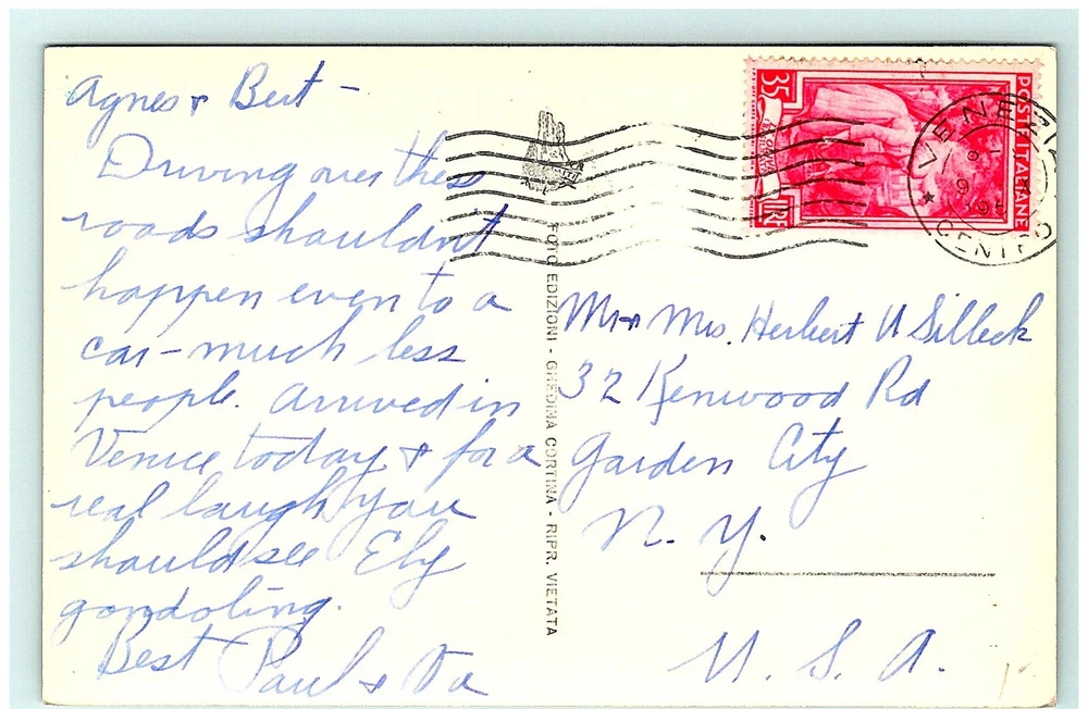 S02-2566, ALBERGHI SAVOIA MERIA, *FRANCE 1950S TO USA. RPPC