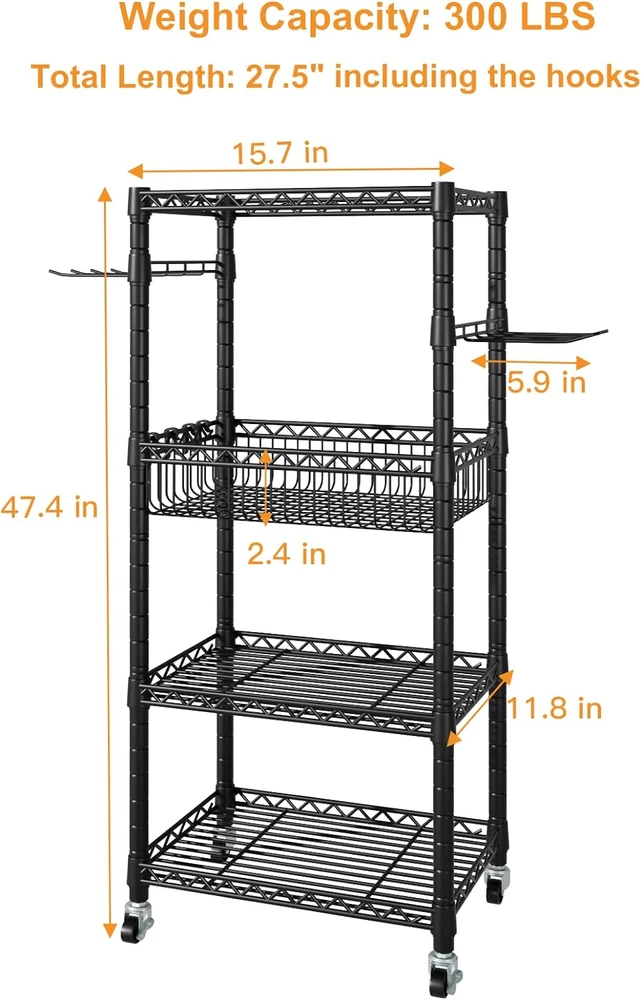 Store New Arrivals Add to Favorite View Feedback Contact Fast deliveries to the customer's home Quality customer service John Make the customers happy! S1 Home Gym Storage, 3-Tier Workout Equipment Organizer with Wheels for Yoga Mats, Foam Roller, Dumbbells, Kettlebells, and Resistance Bands, 47.4" H X 27.5" L X 11.8" D, Black Description [Load Capacity]: Made with carbon steel material to make the workout equipment storage rack sturdy and long-lasting. Each tier can hold almost 80 lbs. Two types of 12 pieces of hooks can hold a capacity of approx. 60 pounds [Dimension]: The main body size is 47.4"H x 15.7"W x 11.8"D. and the exercise equipment storage rack total length can reach 27.5 inches after you assemble the hooks on the 2 sides [Adjustable]: The whole height of 47.4 inches is higher than the normal storage rack. And the height of 2 shelves can be adjusted freely according to your requirements when you need to place some dumbbells and kettlebells on the shelves [Lockable & Portable]: The convenient portable yoga mat storage comes with 4 quality load-bearing industrial wheels and 2 of them are lockable. It’s good to hold your home gym equipment [Security Hooks]: Assemble 2 of the hook brackets onto the cone sleeves, the end rubber sleeves make it safe to use. The S hooks can hang on the shelf sides firmly, and you can hang jump ropes, resistance bands, and others, help saving storage space [Multifunctinal]: The exercise equipment storage is perfect for organizing the workout equipment at home gym, yoga studios, and garage. It allows you to organize exercise mats, yoga mats, foam rollers, yoga blocks, etc [Easy to Assemble]: The simple structured storage rack makes the installation easy and quick. Just refer to the included user manual and no other tools need to assemble it Product Description The Detailed Information You May Concern Color: Black Material: Carbon Steel Shelf Dimension: 15.7"W x 11.8"D Product Overall Size: (15.7 - 27.5)"W x 11.8"D x 47.4"H, Included 2 Sides Hooks Hooks Quantity: 1 pair of hooks rack and 4 pcs of 'S' hooks Features: Movable, Freestanding, Portable, Lightweight Weight Capacity Load: 300 lbs Product Highlights Adjustable Shelves All of the plastic clips installation places and the height between shelves are adjustable amd movable. You can reserve the height between the shelves according to your exercise equipment. Wire Basket We recommend installing the wire basket over the 2 shelves. The wireframe and basket can hold the foam roller, yoga mats, and other rectangular workout types of equipment. Hooks Rack The hooks rack and S hooks can be used to place yoga wheels, back wheels, resistance bands, elastic rods, and jump ropes. The hooks can add extra storage space for your workout racks. Lockable Wheels The wheels make the storage rack convenient and portable. It is easy for you to move heavy-weight shelves. When you need to stop it, please press down 2 of the lockable wheels. Item model number USP0002 Style Modern or Industrial Number of Items 12 Material Metal Mounting Type Floor Mount Country of Origin China Department Unisex Shelf Type Tiered Shelf Shape Trapezoid Unit Count 1.0 Count Room Type Home Gym Weight capacity Maximum weight: 300 Pounds Assembly Required Yes Product Dimensions 11.8"D x 27.5"W x 47.4"H Installation Type Freestanding Product Name Home Gym Equipment Storage Shelf Finish Type matte Specific Uses For Product Home Gym, Yoga Studios, Garage Included Components Shelves, Hooks, Wheels, Assembly Hardware Model Name USP0002 Item Weight 10.7 pounds Lens Color Black, 47.4"H x 27.5"W x 11.8"D Number of Shelves 3 Special Feature Portable, Space Saving, Lightweight, Lockable, Adjustable Weight Limit 300 Pounds Furniture Finish Black Recommended Uses For Product Resistance Bands, Kettlebell, Dumbbell, Yoga Mat, Foam Roller Product Care Instructions Wipe with Dry Cloth Size 27.5"W x 11.8"D x 47.4"H ABOUT US We offer the best prices around on high quality products. Our E-store includes media such as books, movies, music and games while offering electronics, toys, sporting apparel, clothing, tools, general home, garden items and more. SHIPPING We are always working hard to ensure your package arrives as soon as possible. Please understand that some factors like weather, high postal traffic, and the performance of shipping companies are outside of our control. We offer free shipping to the lower 48 states and ship within 2 business days of payment, usually sooner. We do not accept P.O. Boxes. Please provide a physical address. For shipping outside of the continental USA, we only use eBay's Global Shipping Program. The item is shipped to KY and then sent to the rest of the world. International customers are responsible for all duties and taxes. Continue to 'check out' to calculate costs for shipping the item to your country. Messages regarding eBay's Global Shipping Program MUST be directed at eBay EXCLUSIVELY. RETURNS We offer a 30-Day Return Policy on items in which you are not completely satisfied with. You have the option of a full-refund or an exchange of the item. No returns are available on items shipped outside of the USA PAYMENT We accept PayPal. CONTACT US This page content is yet to come Please ad us to your favorite seller and visit again later Thank You CUSTOMER SATISFACTION We try our very best to make sure every customer is completely satisfied. If there's a problem, message us! We're happy to help. WE ACCEPT