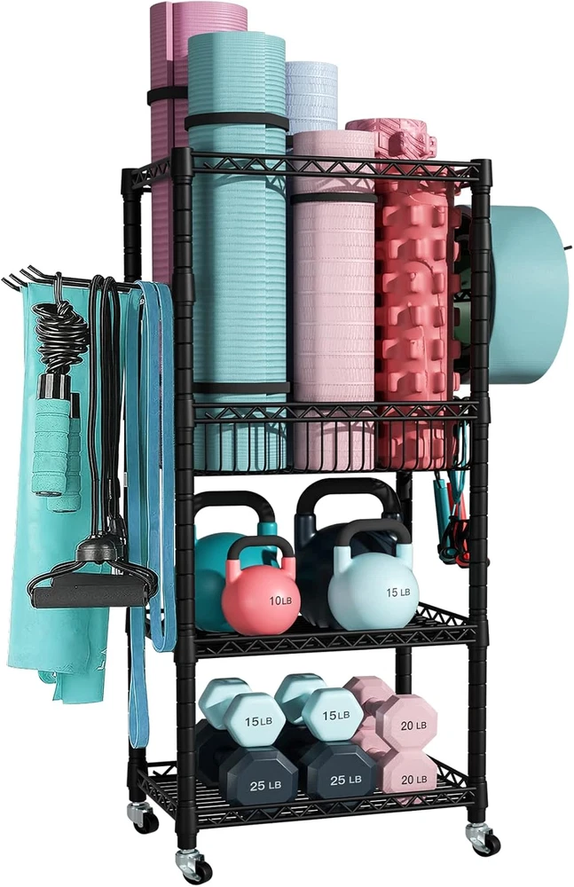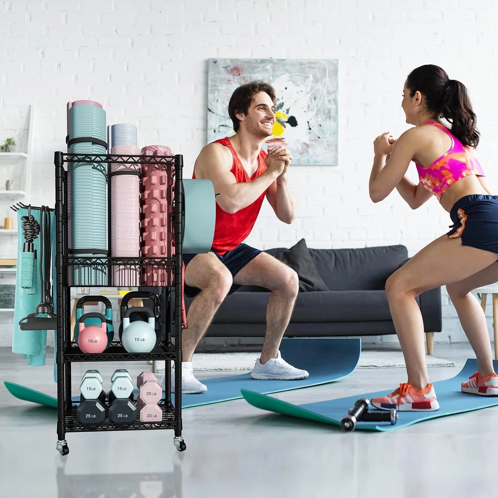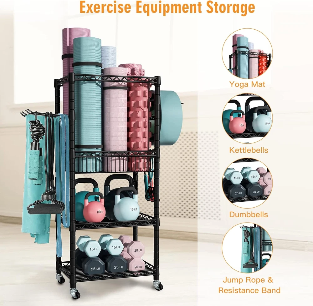 S1 Home Gym Storage, 3-Tier Workout Equipment Organizer with Wheels for Yoga Mat