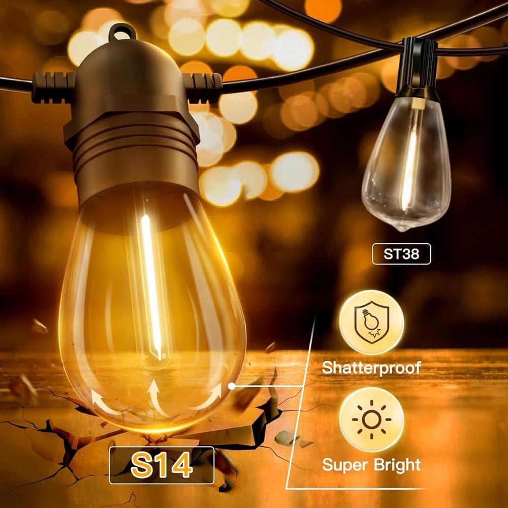 These outdoor string lights are absolutely stunning! The vintage Edison bulbs cast a warm, cozy glow that instantly transforms any space into a charming bistro-style retreat. They’re super easy to hang thanks to the built-in hooks, and the shatterproof design gives me peace of mind. The soft, warm white light creates such a relaxing vibe—perfect for evenings on the patio or backyard gatherings. Plus, they’re energy-efficient and built to last. Love how they add instant ambiance without being too bright. Highly recommend!