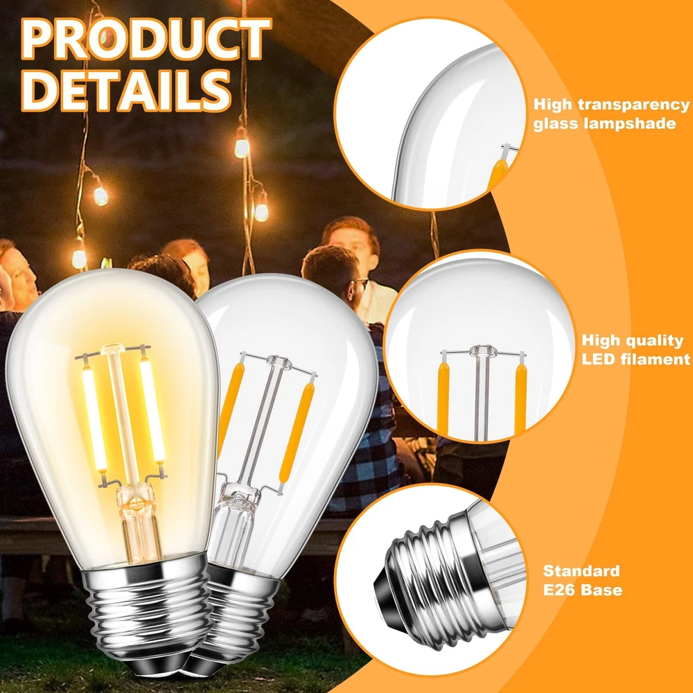S14 Outdoor String Light LED Bulbs 1.5W=15W S14 Replacement LED Filament Ligh...