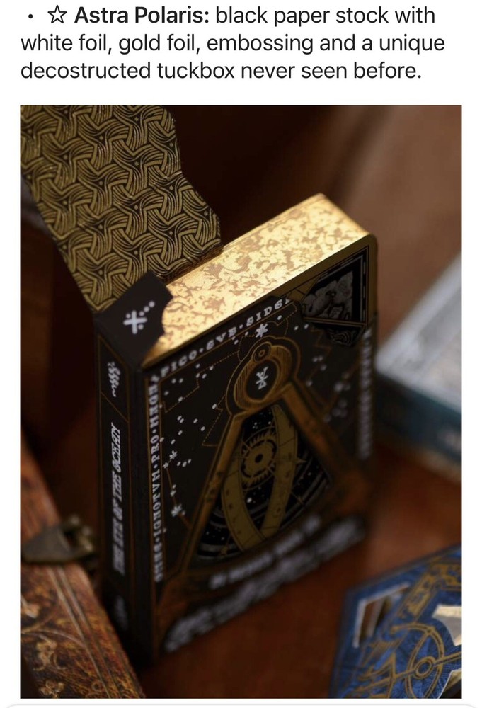 This beautifully gilded Signature Edition of EOTO Astra Polaris was primarily made available to Stockholm17 Patrons and, as the name implies, they were hand-signed by renowned artist and creator Lorenzo G. as shown. Please check my other listings as I will have listed many sought-after decks, including rarities from Lotrek/Oath, Kings Wild Project, Stockholm 17, Bicycle, and more Kickstarter Exclusives. Thank you!