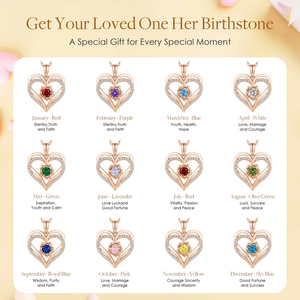 【Double Heart & Rose Flower Design】Love heart necklace with double heart design that symbolizes love for each other. And the morals of roses are love, courage and beauty. Love is never-ending, the rose necklace is the best gift for your mother. Elegant design exudes your mother's elegant and noble temperament, let her feel your love! ❤ The symbol of love: The double heart pendant and rose design express your infinite love and commitment to your loved one, making it the perfect gift for her. ❤ Unique design: Double heart necklace with birthstone crystal - The infinite love heart pendant necklace is made of 925 sterling silver, plated with rhodium and rose gold, lead-free, nickel-free, hypoallergenic, and oxidation resistant. ❤ 5A cubic zirconia: The rose flower is embellished with a gem-grade 5A cubic zirconia at the center, reflecting a dazzling light. With a chain length of 17.7" + 2" extension chain, and a lobster claw clasp, is suitable for almost all female friends. ❤ Ideal gifts: The women's necklace features 12-month birthstones in 12 different colors, making it a perfect gift for women. You can choose the birth month as a birthday gift or select a favorite color for purchase. It can be given as a gift for birthdays, anniversaries, Mother's Day, Valentine's Day, Christmas, New Year, etc., to express your infinite and eternal love. ❤ Exquisite packaging : When you purchase this women's jewelry, you will receive an infinite love heart pendant necklace, an exquisite gift box, and a gift bag, eliminating the need for additional packaging, you can directly give it as a thoughtful gift to your wife, mother, sister, daughter, grandmother, girlfriend, or any special woman in your life.
