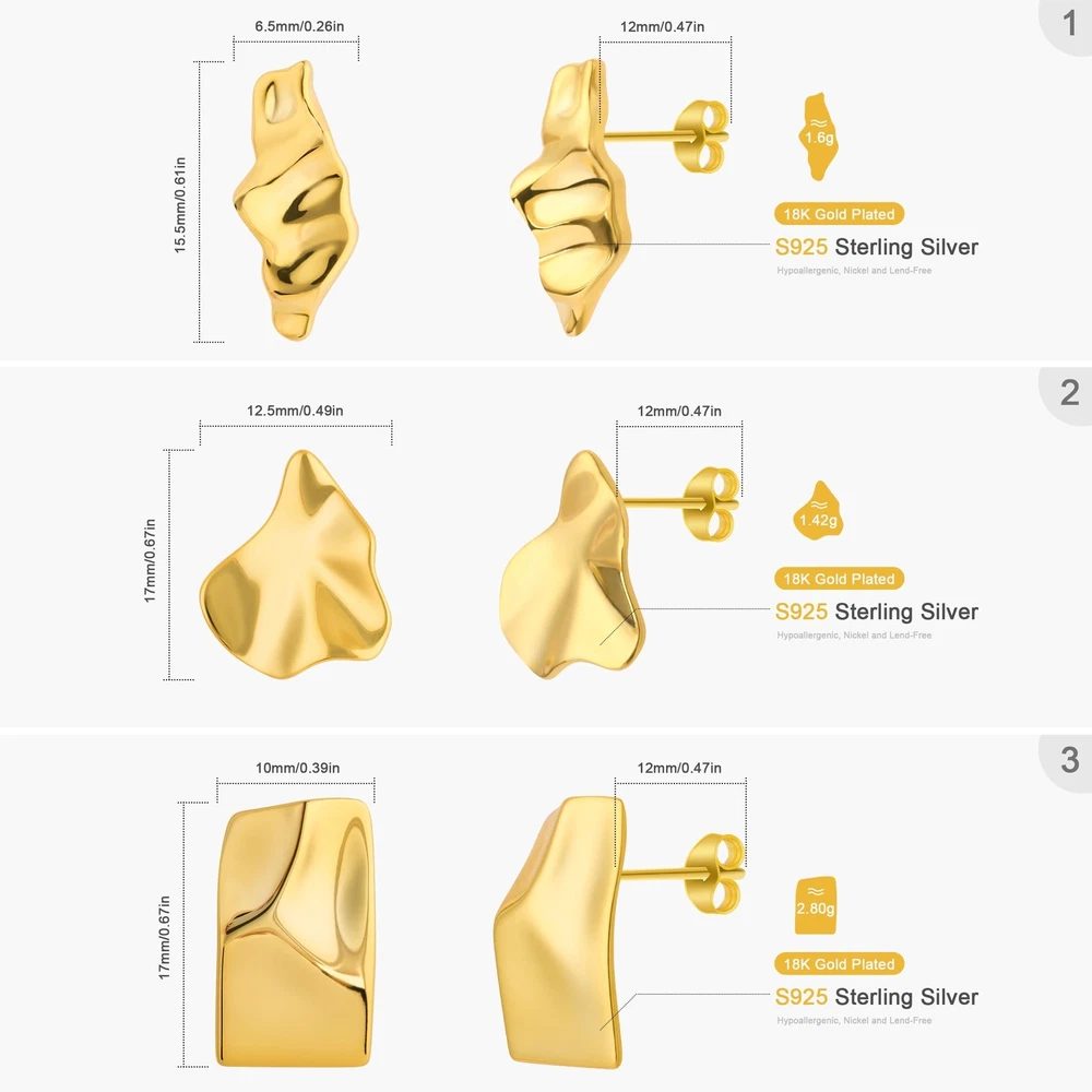S925 Sterling Silver Jewelry Set for Women, 18K Gold Plated 3 Pairs Stud Earrings/Bracelets, Statement Jewelry for Girls Product Details Color: Earring Brand: U.Seizeyes MPN: Does not apply UPC: Does not apply EAN: Does not apply Department : girls Date First Available : March 4, 2024 Brand, Seller, or Collection Name: U.Seizeyes Metal: Sterling Silver Material: 18K Gold Plated Gem Type: No Gemstone Back finding: Push Back