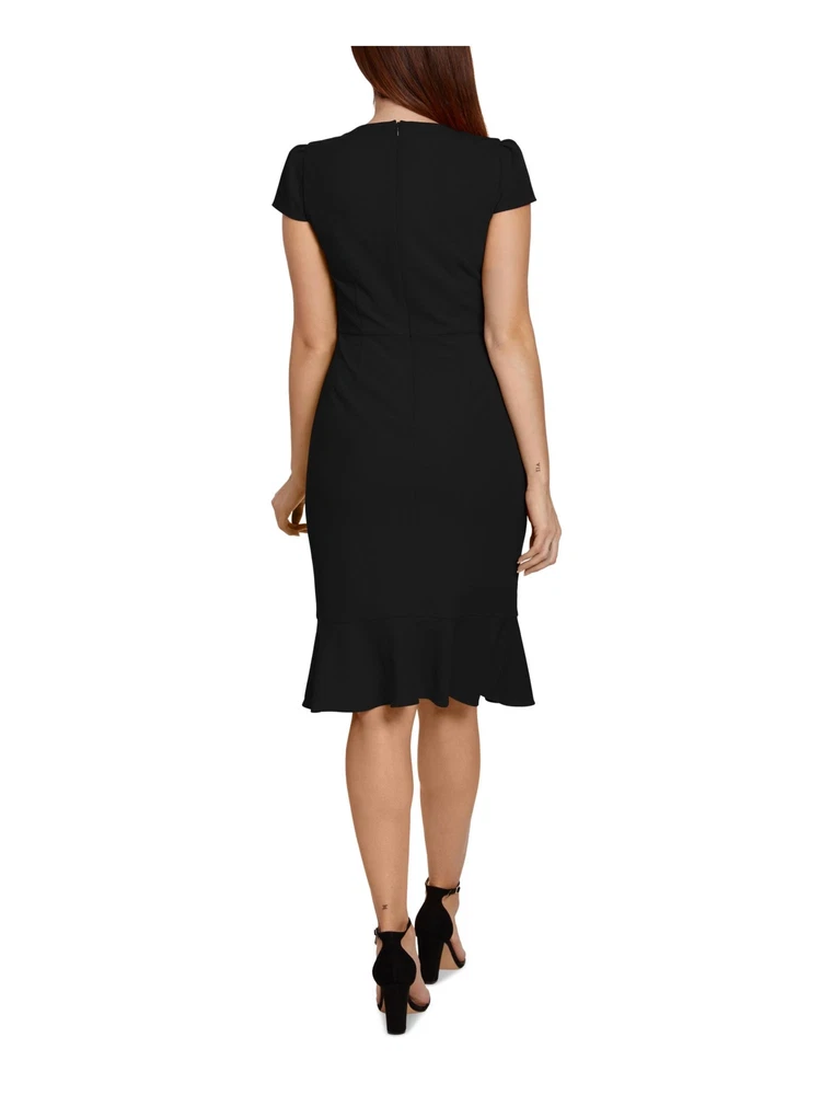 SAGE COLLECTIVE Womens Black Scuba Crepe Asymmetrical Cap Sleeve Dress 2