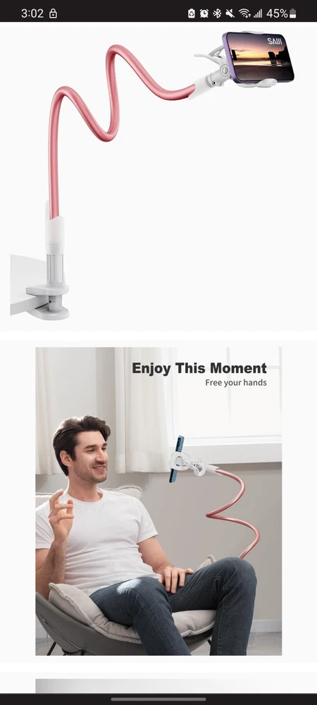 Flexible Gooseneck Design: The SAIJI Gooseneck Bed Phone Stand features a highly flexible and adjustable arm that positions your phone or Nintendo device at the perfect viewing angle. Whether you're in bed, on the couch, or at your desk, you can enjoy hands-free use with ease. Universal Compatibility: This stand is compatible with a wide range of devices, including smartphones ranging from 4.0 to 6.5 inches. It's also suitable for Nintendo Switch, making it a versatile mobile gaming and entertainment accessory. Sturdy and Durable: This phone stand is designed with high-quality materials for durability and stability. The sturdy base and robust gooseneck arm ensure your device stays securely in place, even during gaming or streaming sessions. 360-Degree Rotation: Enjoy complete flexibility with a 360-degree rotating ball joint, allowing you to switch between portrait and landscape modes effortlessly. You can find the perfect orientation whether you're watching videos, playing games, or video chatting. Anti-Slip Design: The stand features a non-slip silicone base and clamp to prevent your device from slipping or scratching. Your phone or Nintendo device will stay securely attached, providing peace of mind during use. Convenient and Hands-Free: This gooseneck stand offers a hands-free solution for various activities. Use it for streaming, reading, video conferencing, or even following recipes in the kitchen. It's a versatile accessory that adapts to your needs. Easy to Install: Setting up the SAIJI Gooseneck Bed Phone Stand is a breeze. Clamp it onto a stable surface, adjust the gooseneck to your desired position, and secure your device in the holder. No tools or complicated assembly is required. Sleek Rose Gold Finish: The stand features an attractive rose gold finish that adds a touch of elegance to your workspace or bedroom. It's not only functional but also a stylish addition to your tech accessories. Compact and Portable: When not in use, the stand's lightweight and compact design makes it easy to store or carry with you. It's an ideal travel companion for on-the-go entertainment. Ideal Gift: Whether for yourself or a loved one, this gooseneck phone stand is a thoughtful and practical gift. It enhances the convenience of using mobile devices for various tasks. Elevate your mobile device experience with the SAIJI Gooseneck Bed Phone Stand in stylish rose gold. Its flexibility, compatibility, and durability make it a versatile accessory for comfortable and hands-free phone and Nintendo gaming, video streaming, and more. Stay entertained and productive while keeping your device securely in place.