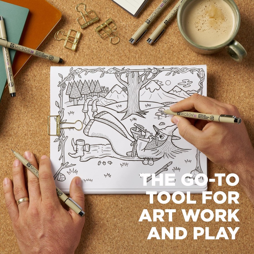 Precise archival pens create fade resistant, waterproof, bleed free marks for drawing, artwork, journaling, and more Includes 6 black ink Pigma Micron pens in point sizes 005 (0.20mm), 01 (0.25mm), 02 (0.30mm), 03 (0.35mm), 05 (0.45mm), and 08 (0.50mm) Pigma Micron ink is pH neutral, quick drying, and approved by ACMI toxicologists; pens have AP certification seal Single pigment ink prevents color variations; pens feature durable plastic body and smooth grip for comfort Japanese quality Sakura Pigma Micron pens deliver consistent results for manga artists, graphic designers, and crafters
