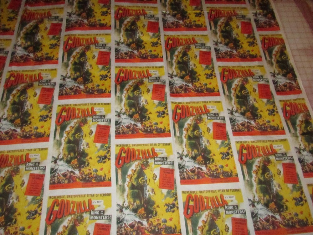 This fabric features a Godzilla Movie Poster print on 100% cotton material. With measurements of 45 x 70 inches, it is ideal for various craft projects. Main solid piece is 45 by 70 inches with another 18 by 25 inch piece attached fabric is cut with uneven edges ~ please see pictures Pre-washed. PLEASE ask any questions before bidding. Sold As-is.