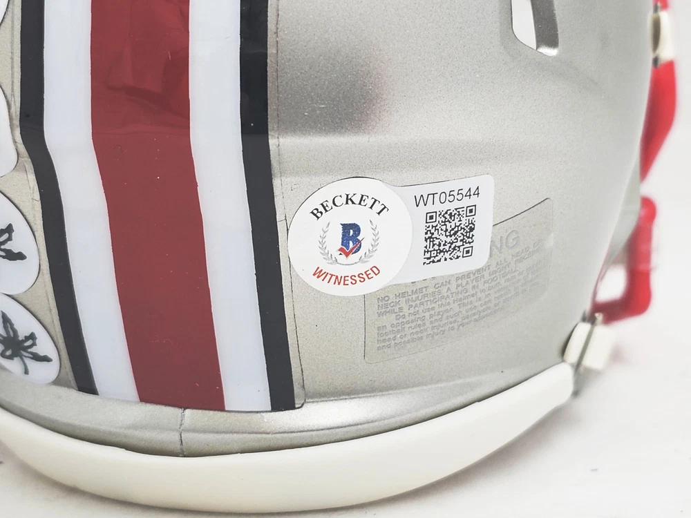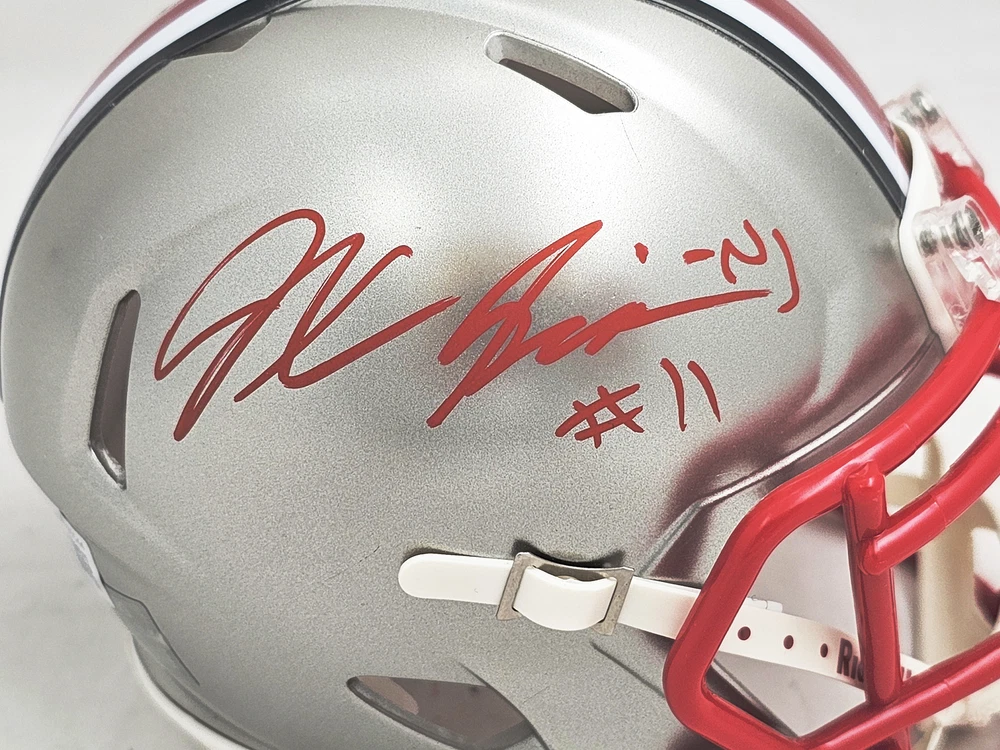 ACT FAST! THIS IS A MILL CREEK SPORTS 2024 HOLIDAY SALE ITEM!! WE ONLY HAVE A HANDFUL TO SELL AT THIS PRICE!! SALE!! Jaxon Smith-Njigba Autographed Ohio State Buckeyes Flash Silver Speed Mini Helmet Beckett BAS Witness Stock #216620 Baseball Baseballs Bats Cards Framed Items Hats/Helmets Index Cards Jerseys Magazines Other Items Photos Post Cards Posters Basketball Basketballs Cards Framed Items Index Cards Jerseys Magazines Other Items Photos Football Cards Footballs Framed Items Full Size Helmets Index Cards Jerseys Magazines Mini-Helmets Other Items Photos Tickets Boxing Cards Framed Items Gloves Index Cards Magazines Other Items Photos Robes & Trunks Hockey Cards Framed Items Index Cards Jerseys Magazines Other Items Photos Pucks Other Sports Golf MMA Olympics Racing Soccer Softball Tennis Wrestling Misc. Entertainment Political Other Cards Baseball Basketball Boxing Football Golf Hockey Sale Items Sale Items Mill Creek Sports Product ID: 216620 Description: This is an Ohio State Buckeyes Flash Silver Speed Mini Helmet that has been hand signed by Jaxon Smith-Njigba. The Flash helmets are delicate and may have some marks or scratches on them. This item has been witnessed and certified authentic by Beckett Authentication (BAS) and comes with their tamper-proof witness sticker. Item type: This is a stock item. We have several of these and you will receive one that is of equal quality. This item is mint and we guarantee your satisfaction. About Us: We pride ourselves on selling 100% certified authentic autographed memorabilia. We have a full time retail store that has been open in the Seattle area since 1991. Our retail store hours are Monday-Saturday 10am-6pm PST. Mill Creek Sports 13616 Bothell Everett HWY Mill Creek, WA 98012 Contact Us: Please feel free to contact us through eBay if you have any questions. You may be interested in our other eBay listings . We ship all items securely and professionally. Your item will ship within one (1) business day after payment is received. If you are not 100% satisfied with your order, return it within thirty (30) days from the day you receive it for a full refund. If you are an international bidder, import duties, taxes and charges are not included in the item price or shipping charges. These charges are the buyer's responsibility. Please check with your country's customs office to determine what these additional costs will be prior to bidding/buying. Powered by SixBit's eCommerce Solution