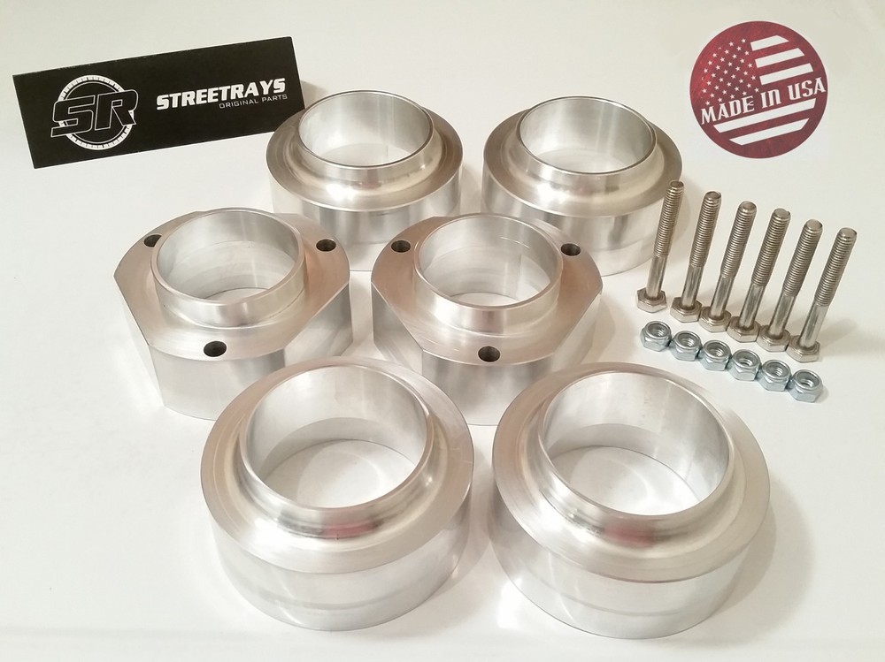 StreetRays [Originals] 89-98 Geo Tracker / Suzuki Sidekick 2WD 4WD 2" Front & Rear Leveling lift kit CNC Machined Finished (All Around) Application: 1989-1998 Geo Tracker 1989-1998 Chevy Tracker 1989-1998 Suzuki Sidekick StreetRays [Originals] parts are 100% machined right! here in Central Texas. Matched with the best hardware which is also sourced here in USA. Quality material & precision machining is the main ingredients of all our parts. StreetRays [Originals] lift kit will raise the front & rear of your Sidekick / Tracker by an actual 2". Our spacers are CNC machined out of 6061 T6 billet aluminum in Central Texas. Guaranteed to outlast everything on the car and will not fail you ever. And we can assure you that our spacers are the strongest on the market and come with a 100% satisfaction guarantee and full warranty. StreetRays coil spring spacer are precision machined and have spring seat flange to ensure proper seating of the spring and each spacer is guaranteed to fit perfectly every single time. This is not a cast plastic or cast aluminum or cast rubber or polyurethane. These are 100% CNC machined billet aluminum. Most importantly, they allow you to fit up to 31" tires. StreetRays kit will also include all the correct hardware and a general instruction. We recommend professional installation if you don't have the correct set of tools.