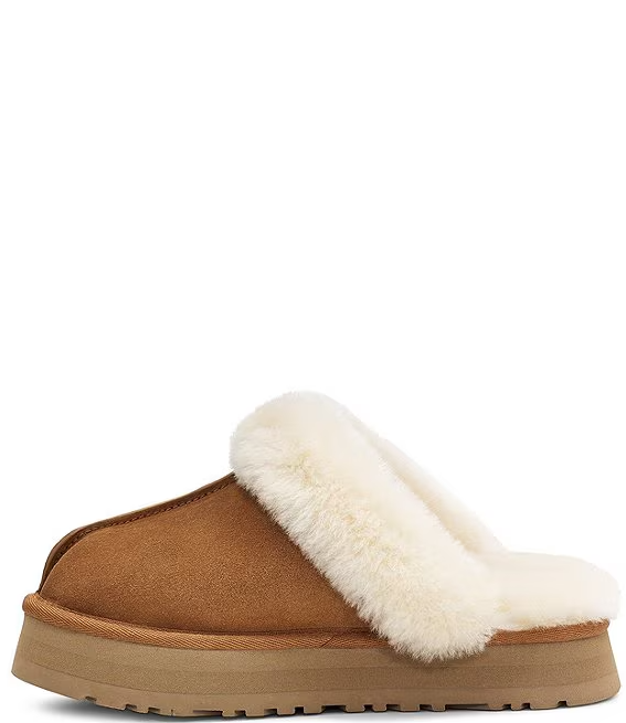 🌟 UGG Disquette Suede Fur Platform Slippers Chestnut Size 7 🌟 ✨ Description : Step into ultimate comfort and style with the UGG Disquette Suede Fur Platform Slippers in Chestnut . Made from premium suede and lined with plush, soft shearling, these slippers provide the perfect blend of luxury and warmth. The platform sole adds a modern twist, making them perfect for both lounging at home or stepping out for a quick errand. Whether you're looking to keep your feet cozy on a chilly day or add a chic touch to your loungewear, these slippers offer the ideal combination of comfort and style. 💎 Key Features : Premium Suede : Soft, durable suede material for a high-quality look and feel. Plush Shearling Lining : Provides warmth and comfort for your feet, perfect for colder weather. Platform Sole : Adds a trendy platform height for added style and comfort. Color : Chestnut – A classic, versatile color that pairs well with any outfit. Size : 7 – Available in a variety of sizes, ensure the perfect fit for your feet. 🌸 Why You’ll Love It : These slippers are more than just a cozy footwear option—they combine the signature warmth of UGG with a stylish platform design, giving you a modern, elevated look. Whether you’re relaxing at home or running quick errands, they offer all-day comfort and a fashionable edge. Plus, the Chestnut color adds a touch of warmth and versatility to your wardrobe
