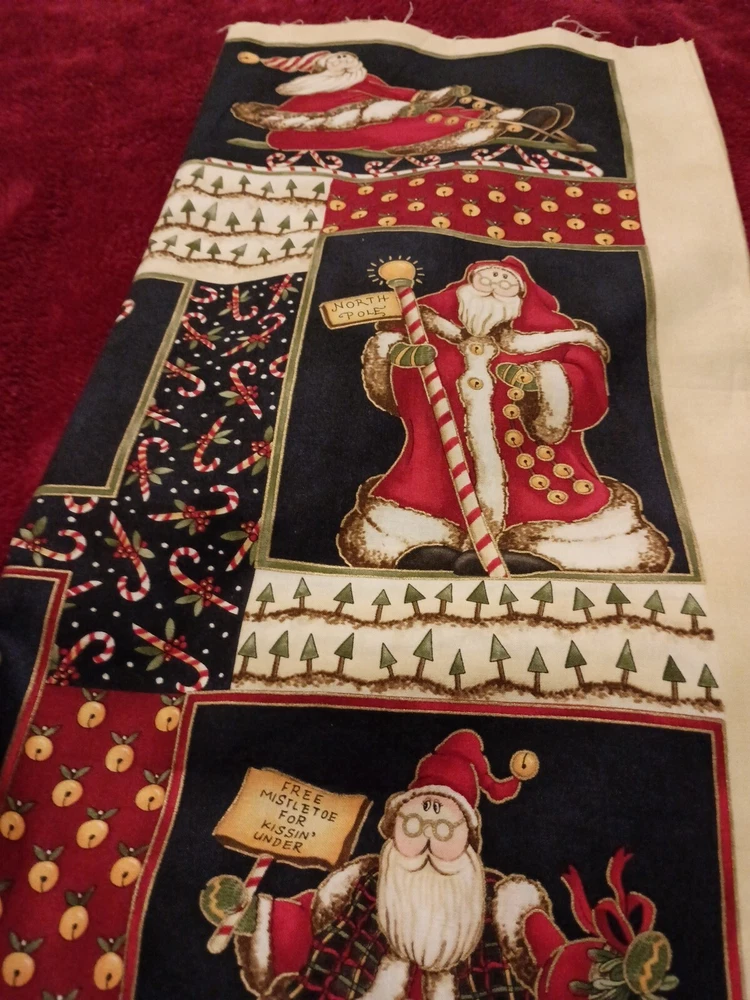 Add a festive touch to your Christmas décor with this whimsical Santa fabric designed by Diane Knott. The multicolor cotton panel measuring 23"X45" is perfect for creating a large throw pillow or for use in your crafting projects. The fabric is suitable for use in quilting, sewing and other crafts. It features a Santa theme and is sure to add a cheerful vibe to your holiday projects. Whether you're making a new pillow cover or a holiday quilt, this fabric is a must-have for any Christmas project. Kitty cat not included 😁