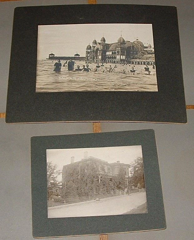 SALT LAKE UTAH Antique CABINET PHOTO LOT: 1 LOT with 6 Different Vintage Cabinet Photos - Not Dated but Pre-1910 - 6 Utah Images - I believe these could be by Famous Railroad & Mormon Photographer C.R. Savage - 110+ Years Old & in Nice Condition - SIZE(s): 5 mounted Photos are est. 7" x 9" total & 1 is est. 5" x 6" - SEE details, B&W Single weight, Silver Gelatin non-glossy photos, Mounts in nice shape - SALT LAKE UTAH, SALT PALACE At NIGHT, SALTAIR BATHING, BRIGHAM YOUNG'S GRAVE, AMELIA PALACE, TEMPLE SQUARE - Very Good+ Condition or Better: NICE, Have some wear, clean, flat, No creases, No image tears, No tack Holes, Has corner (mount) & edge wear & few corner breaks, dings, dents & or wrinkles, No stains, Not brittle, has some silvering, Has Age yellowing, Sold As-Is - SEE ALL IMAGES. SALT LAKE CITY UTAH CABINET PHOTO LOT (6pcs) Pre 1910 C.R SAVAGE, Mormon VINTAGE SALT LAKE CITY UTAH CABINET PHOTO LOT (6pcs) Pre 1910 C.R SAVAGE, Mormon VINTAGE Click images to enlarge Description SALT LAKE UTAH Pre 1910 ANTIQUE CABINET PHOTO LOT : You are Bidding on 1 LOT with 6 Different Original Vintage Cabinet Photos - Not Dated but Pre-1910 - 6 Utah Images - I believe these could be by Famous Railroad & Mormon Photographer C.R. Savage - Includes: Salt Lake Utah, Salt Palace At Night, Saltair Bathing, Brigham Young's Grave, Amelia Palace, Temple Square - Silver Gelatin non-glossy photos, Mounts are in nice shape - These are over 110+ Years Old, used & in Nice Condition - Ready to Display. 6 CABINET PHOTOS INCLUDE: #1) "SALT LAKE, UTAH: Unidentified Building at "137 North Main St., Salt Lake, Utah" - Elite Capitol Hill Area Home, near the Historical McCune Mansion, Daytime scene, backside has handwritten Street Address of "137 North Main St., Salt Lake, Utah" - Total Mount Size: est. 5" x 6", Photo Size is: est. 3-1/4" x 4-1/2". #2) "SALT PALACE At NIGHT": Night Photo of the Original Salt Palace with Lights on, unfortunately this building burned down in 1910 - Total Mount Size: est. 7" x 9", Photo Size is: est. 4" x 6-1/8", photo has silvering. #3) "SALTAIR - BATHING": Daytime Photo with ALL MEN Bathers at the Great Salt Lake, Floating & swimming at the Popular SALTAIR Resort, The Fabulous SALTAIR Palace in the background - The Saltair Palace was destroyed in a fire in 1925 - Total Mount Size: est. 7" x 9", Photo Size is: est. 4" x 6-1/8", photo has some silvering. #4) "BRIGHAM YOUNG'S GRAVE": Daytime Photo with 2 Men peering over the wrought iron fencing.. at the Cemetary Grave of Mormon Leader, Brigham Young - Total Mount Size: est. 7" x 9", Photo Size is: est. 4-1/8" x 6-1/8", photo has some silvering. #5) "AMELIA PALACE", UTAH: Daytime Photo of the "Amelia Palace" also known as the "Gardo House", a Great Historic Mansion originally built for Brigham Young, (Looks like something the "Addams Family" lived in), William H. Folsom, one of the designers of the Gardo House, was the father of Amelia Folsom Young, for whom the house was nicknamed "Amelia's Palace." This Mansion was Demolished in 1921 - Total Mount Size: est. 7" x 9", Photo Size is: est. 4-1/8" x 6-1/8", photo has some silvering - Upper left mount corner is gone. #6) "TEMPLE SQUARE": Daytime Photo of the Mormon Temple & Entire Block & area around it, shows a tiny Horse Drawn Buggy or Wagon at right side of blook at street curb - Total Mount Size: est. 7" x 9", Photo Size is: est. 4" x 6", has some silvering, upper left corner has damage (backside), NOTE : Photo title is in silver ink & photo also has some small silver Ink marks at top sky area. SIZE: 5 mounted Photos are est. 7" x 9" total and 1 is est. 5" x 6" - SEE Descriptions (above) for actual sizes, Vintage B&W Single weight, Silver Gelatin non-glossy photos, Mounts are in nice shape - 100% Authentic - Not signed, No stamps or identifying marks - These came from a Estate Sale of a well to-do family who lived in Portland Oregon & traveled alot, Pre 1910 & have been stored away for over 110+ years - the items you see are the ones you will recieve - Photos are Sold As-Is - SEE IMAGES for Sharpness & Defects. Very Good+ Condition or Better: Nice, Have some wear, clean, flat, No creases, No image tears, No tack Holes, Has corner (mount) & edge wear & few corner breaks, dings, dents & or wrinkles, No main stains, Not brittle, fading, has some silvering, Has Age yellowing, Sold As-Is - SEE IMAGES - A Nice Addition to Any Collection Or Give It as a Gift! NOTE: These are Vintage Items & NOT newer Copies or Reproductions! Payment USA BUYERS ONLY : Accepted Methods of Payment: Paypal.com, Visa, Mastercard, Discover, American Express, Google Pay (G Pay), and Other Ebay accepted forms of Payment. All items are Shipped Boxed, Fully Insured & Packed well to prevent damage in shipping. I am sorry we do not ship worldwide at this time, Please contact me for possible exceptions. All Questions Gladly Answered. Shipping All Items are sent with the US Postal Service, via USPS GROUND ADVANTAGE (formerly 1st Class Service), Fully Insured, with Delivery Confirmation. Always "GORILLA - PROOF" Packaging ... Every item is Bagged & Shipped Boxed for Protection Against damage during shipping. About Us In Business Since 1970 ... Selling Quality Vintage Collectibles on Ebay since 1997. See My Great Feedback of Happy Customers. Buy with Confidence! Contact Us E-mail Me Anytime with Your Detailed Want-List. Let me know & I can List items on Ebay for your viewing . I have a Huge Inventory of items for sale, Circa 1900-1985 that are Not online. Images sell! Get Supersized Images & Free Image Hosting Create your brand with Auctiva's Customizable Templates. Attention Sellers - Get Templates Image Hosting, Scheduling at Auctiva.com. Track Page Views With Auctiva's Counter