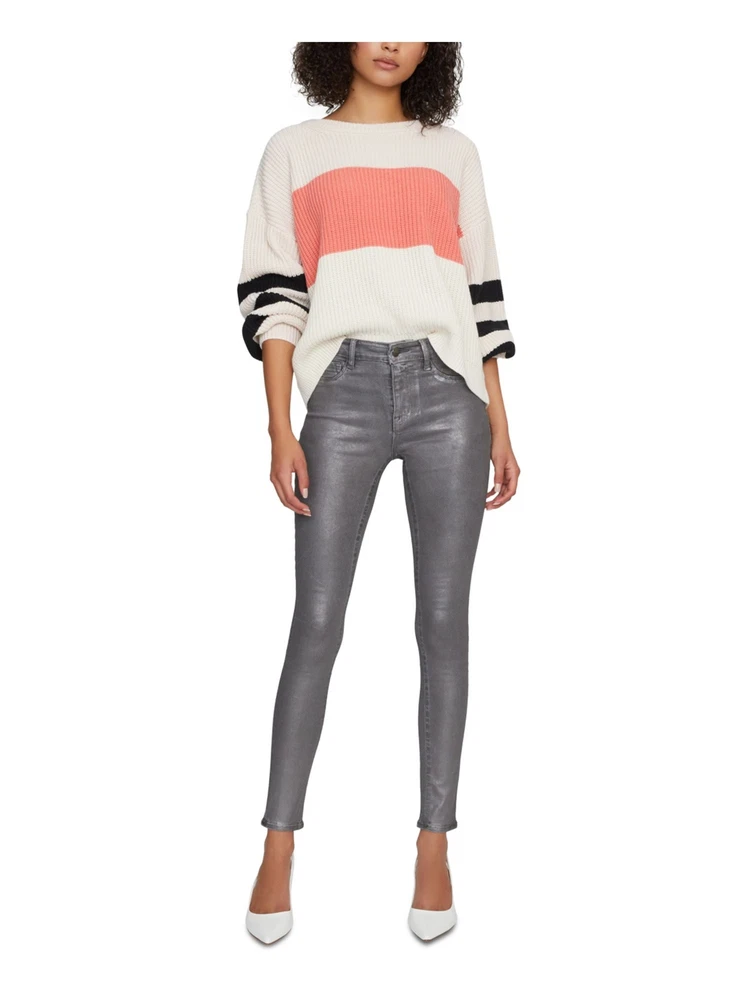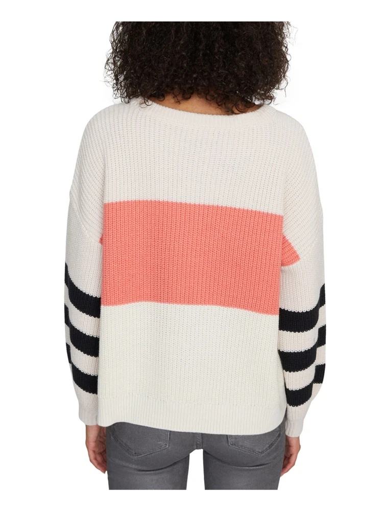 SANCTUARY Womens Ivory Color Block Long Sleeve Crew Neck Sweater Juniors S