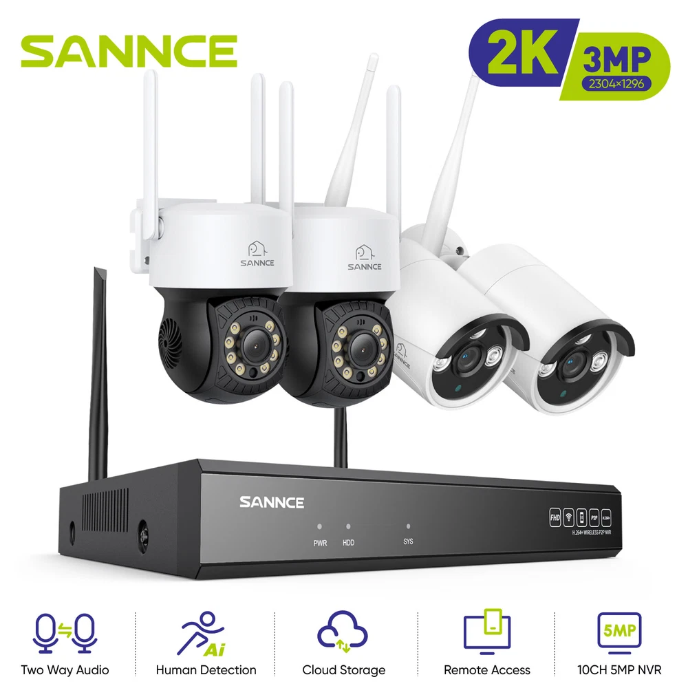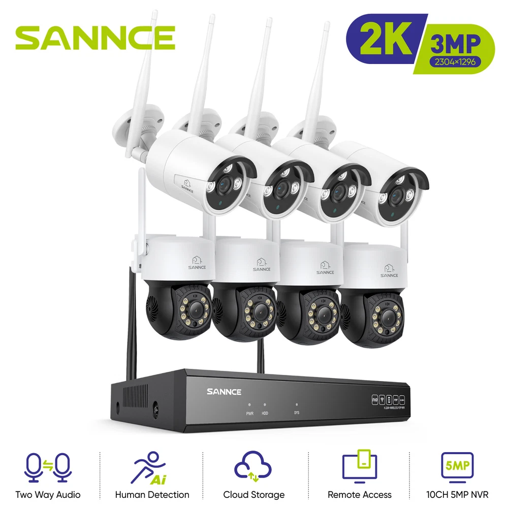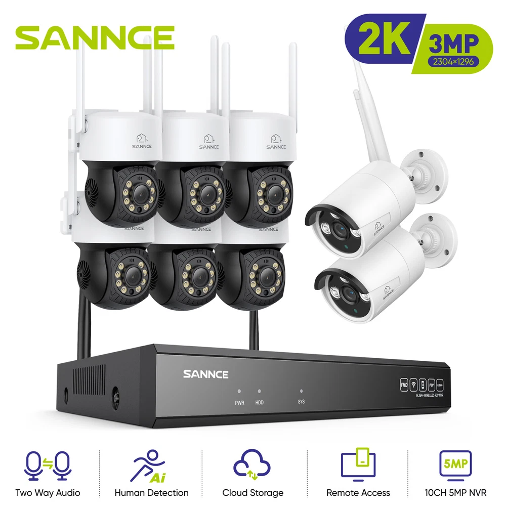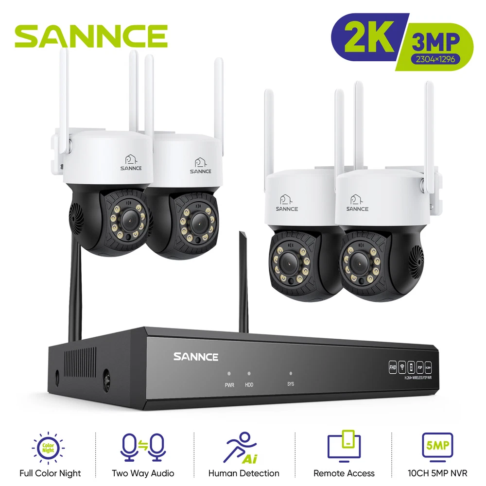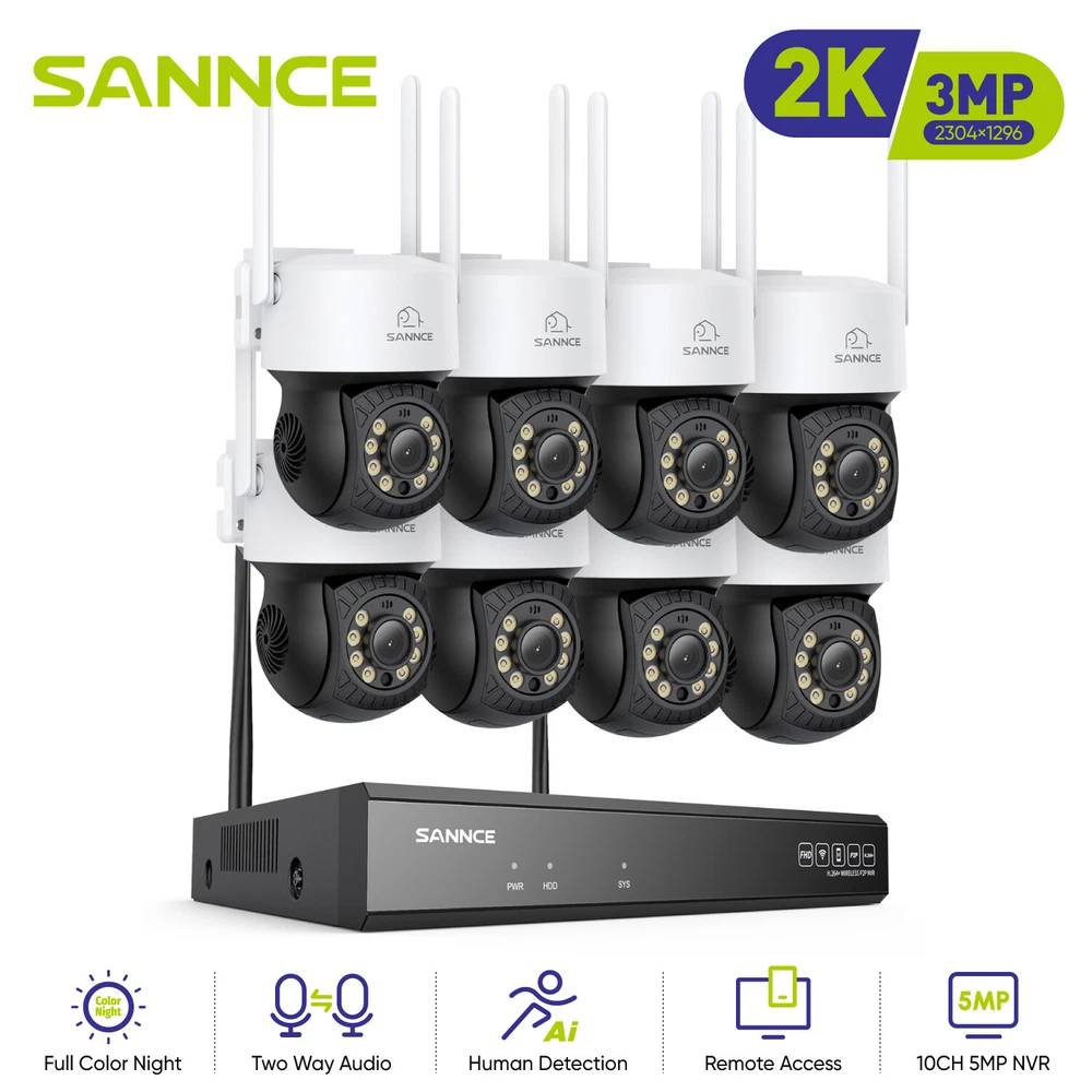 SANNCE 10CH 3MP Outdoor Wireless PT Security Camera System with 2-Way Audio and Color Night Vision