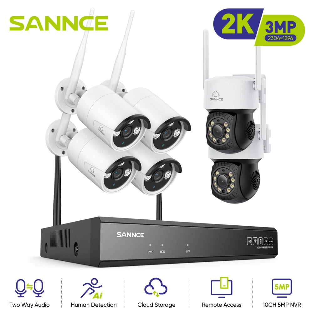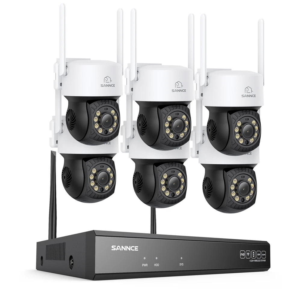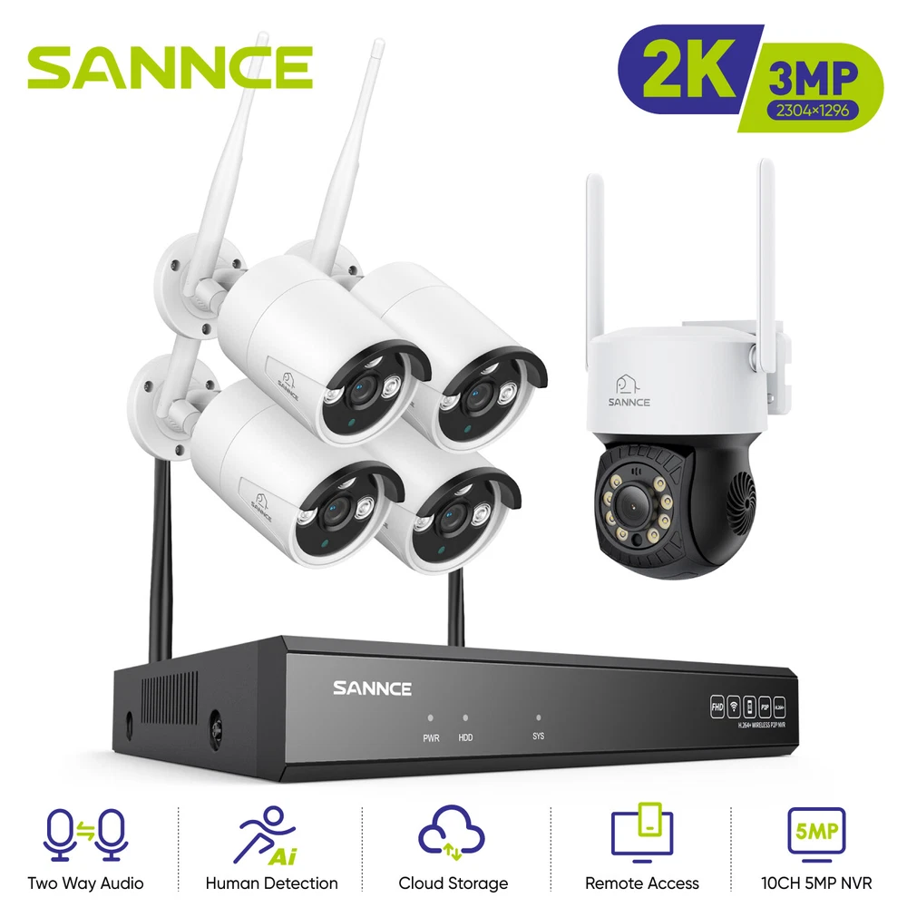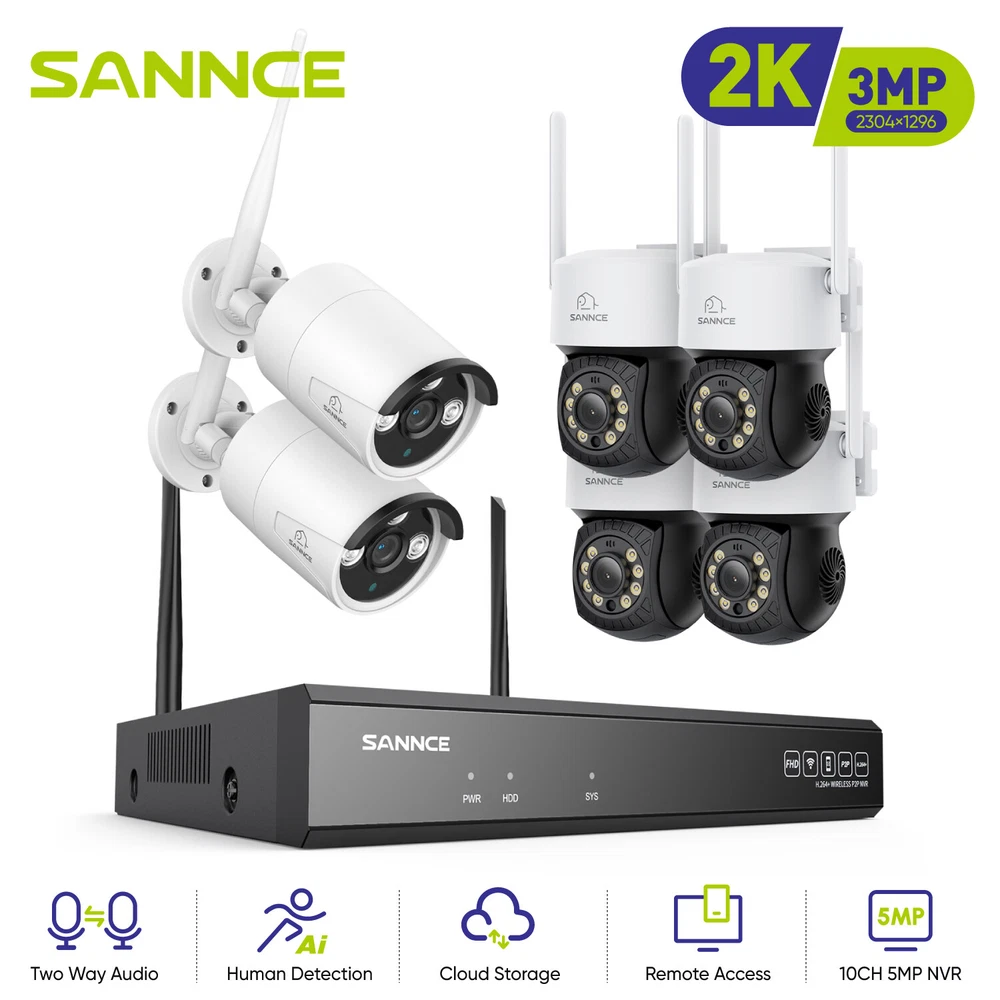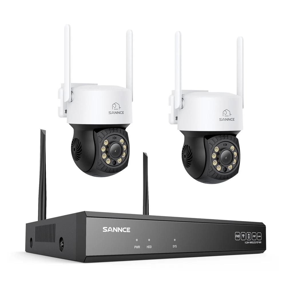 SANNCE 10CH 3MP Outdoor Wireless PT Security Camera System with 2-Way Audio and Color Night Vision