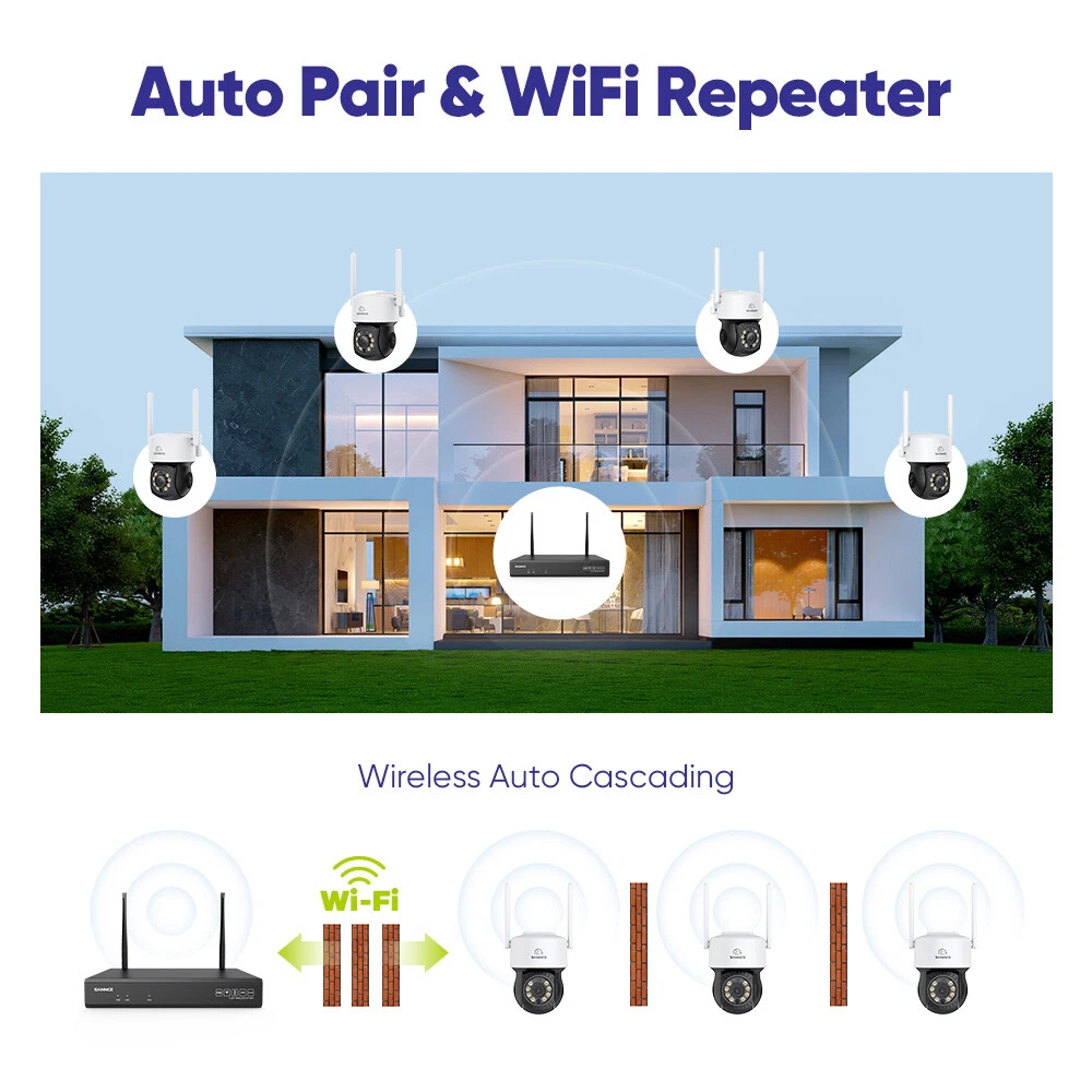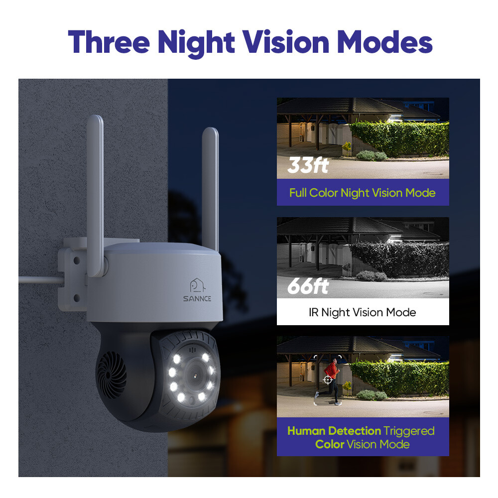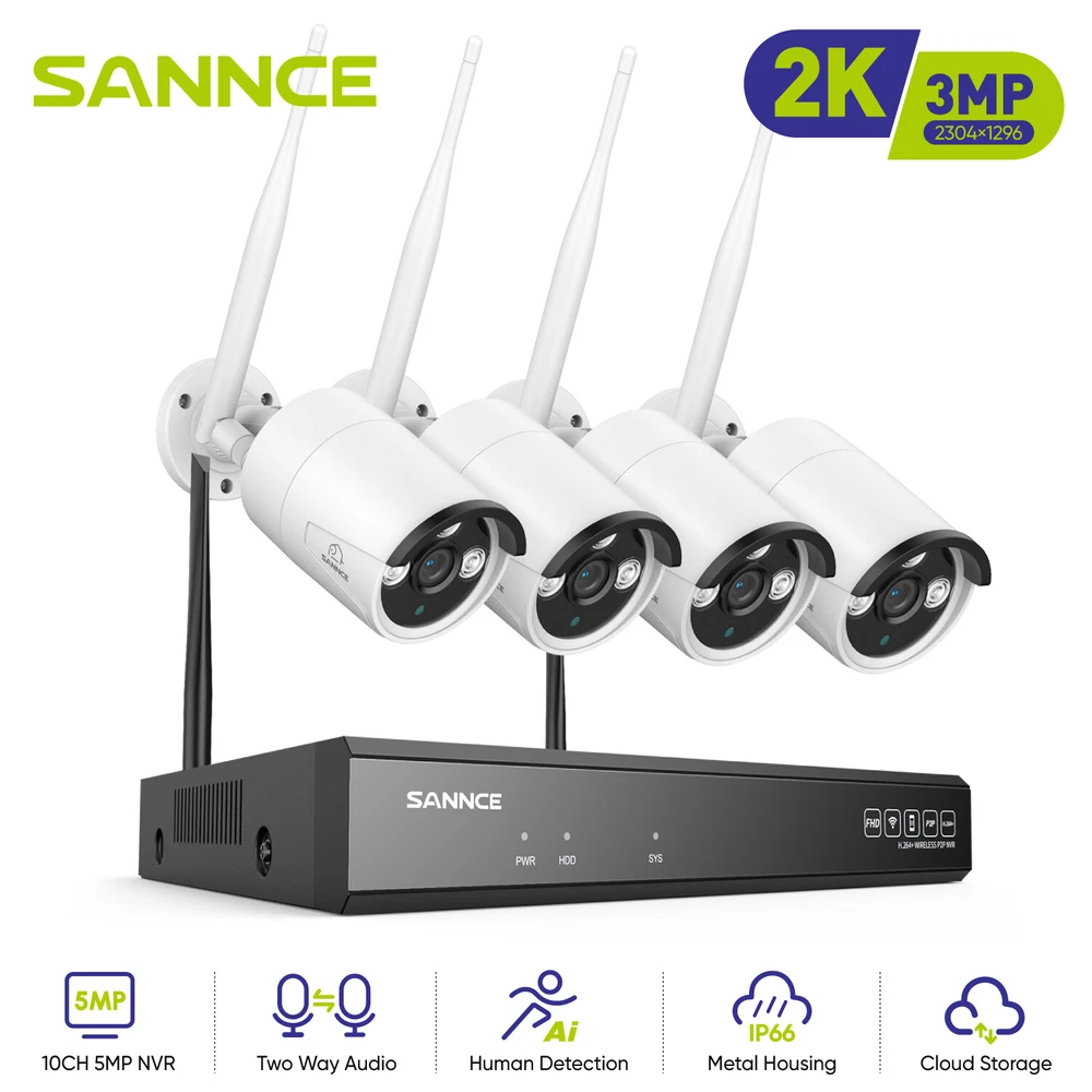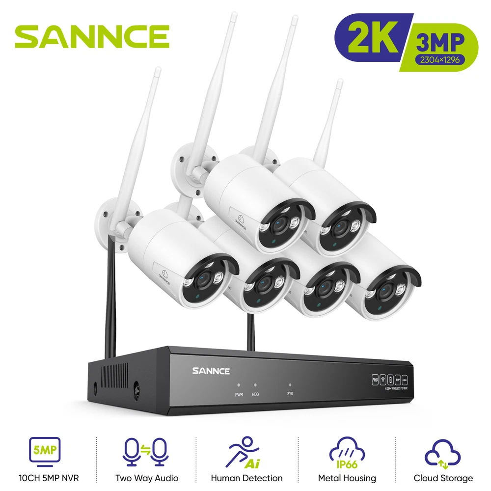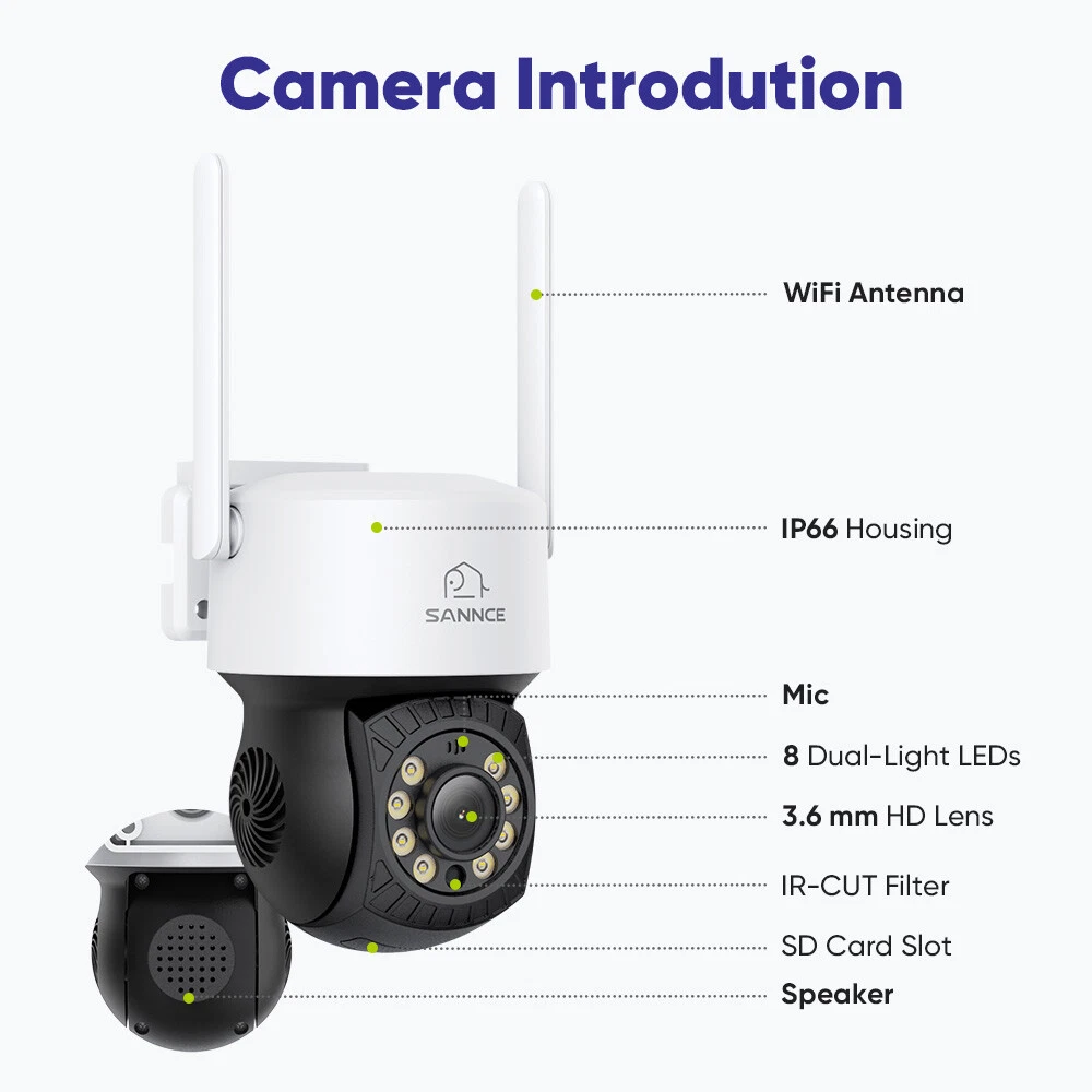 SANNCE 10CH 3MP Outdoor Wireless PT Security Camera System with 2-Way Audio and Color Night Vision