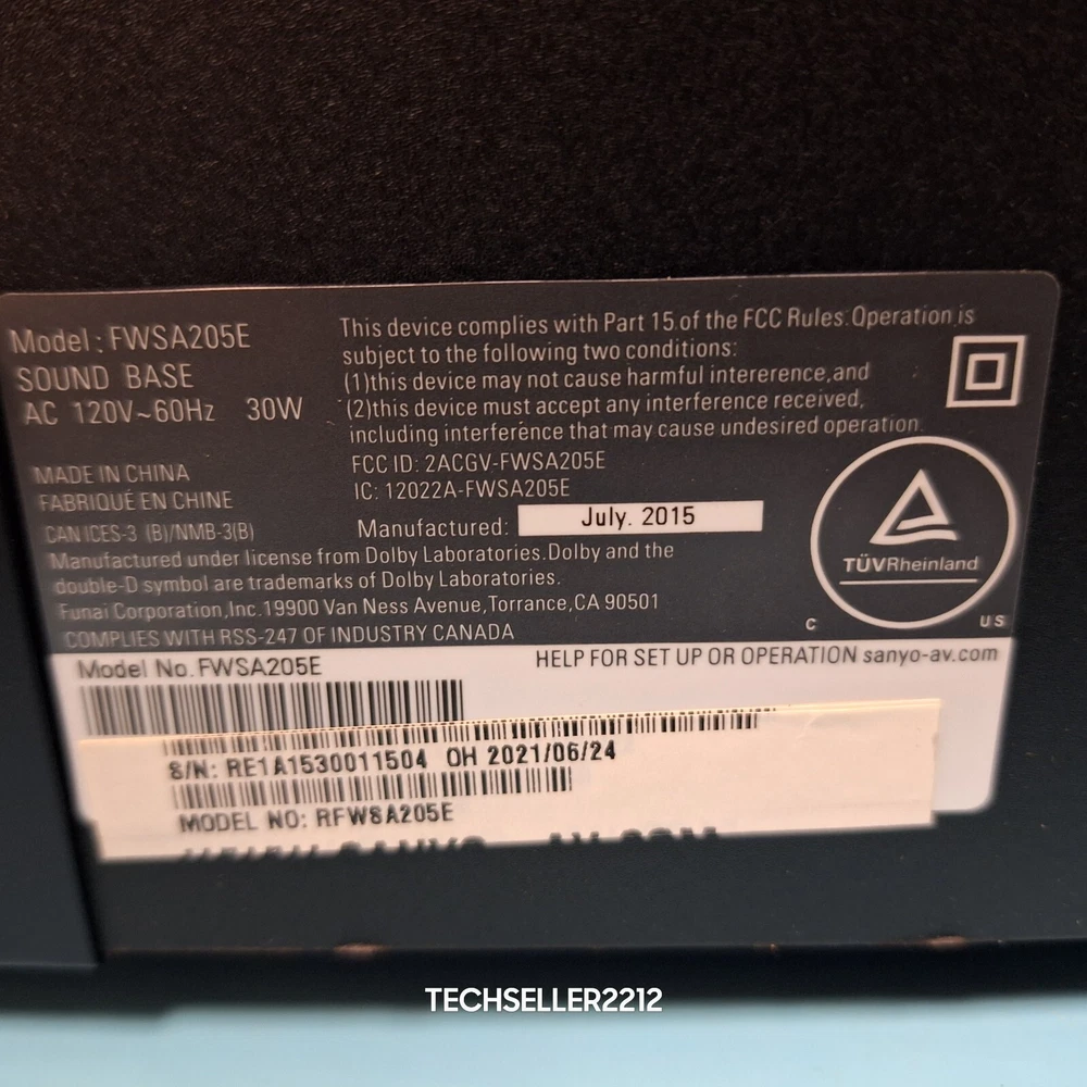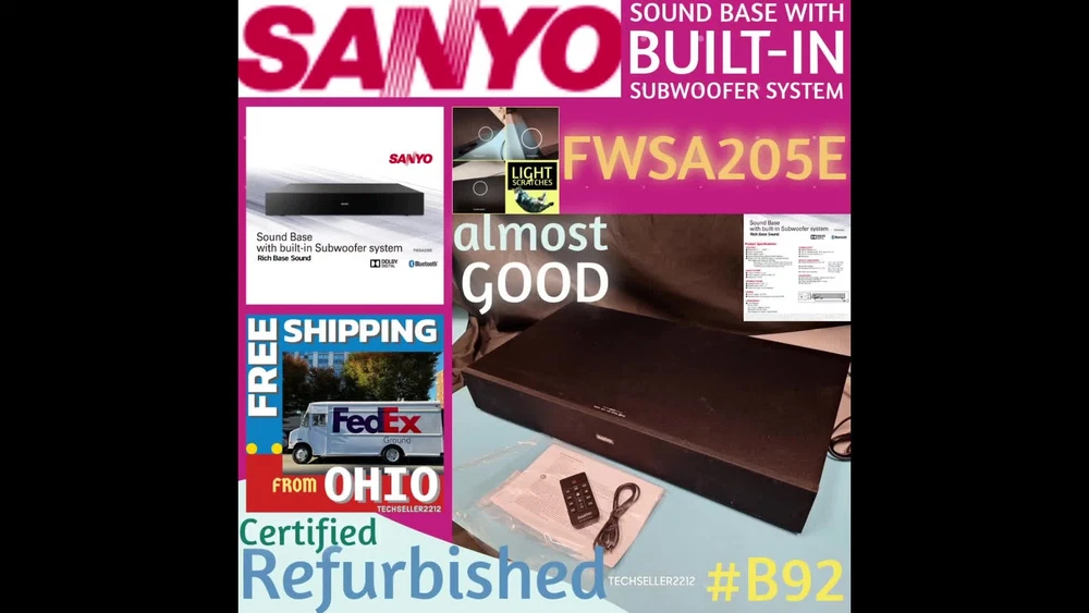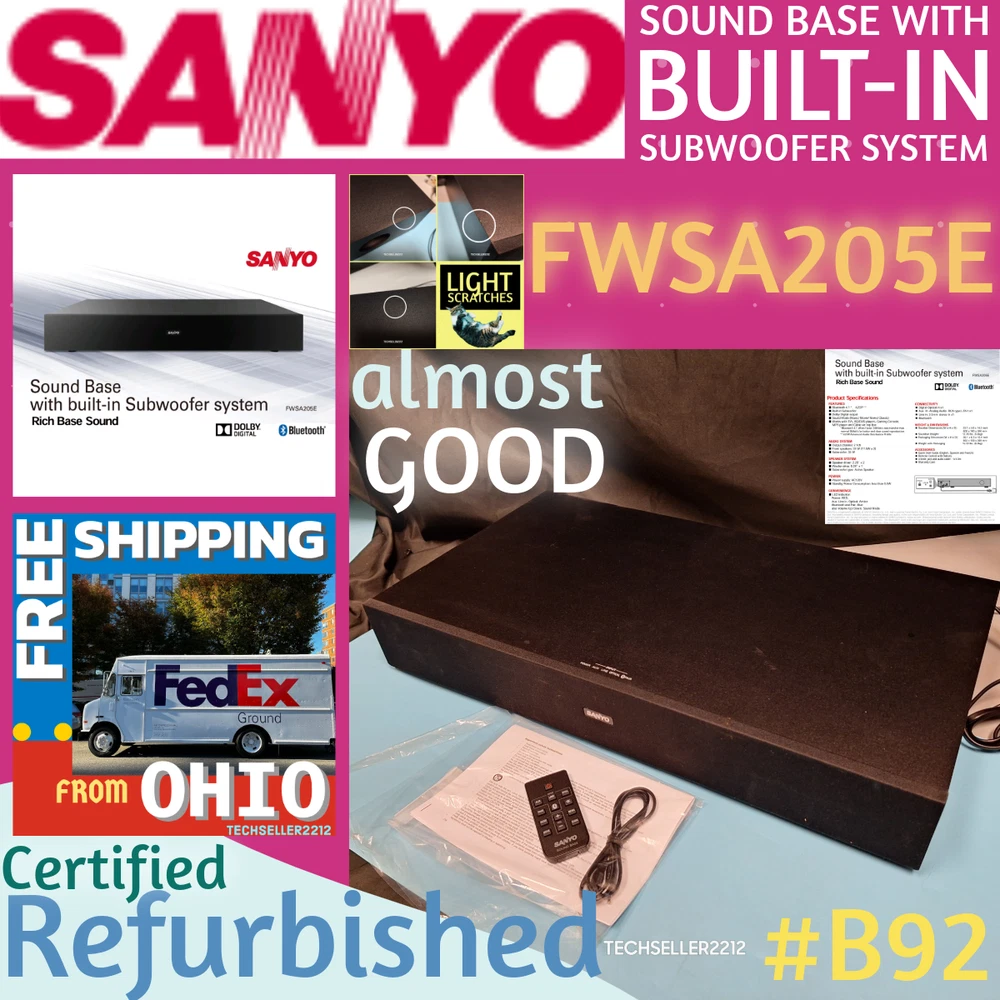 SANYO Sound Base with built-in Subwoofer System - FWSA205E - with Remote /cable