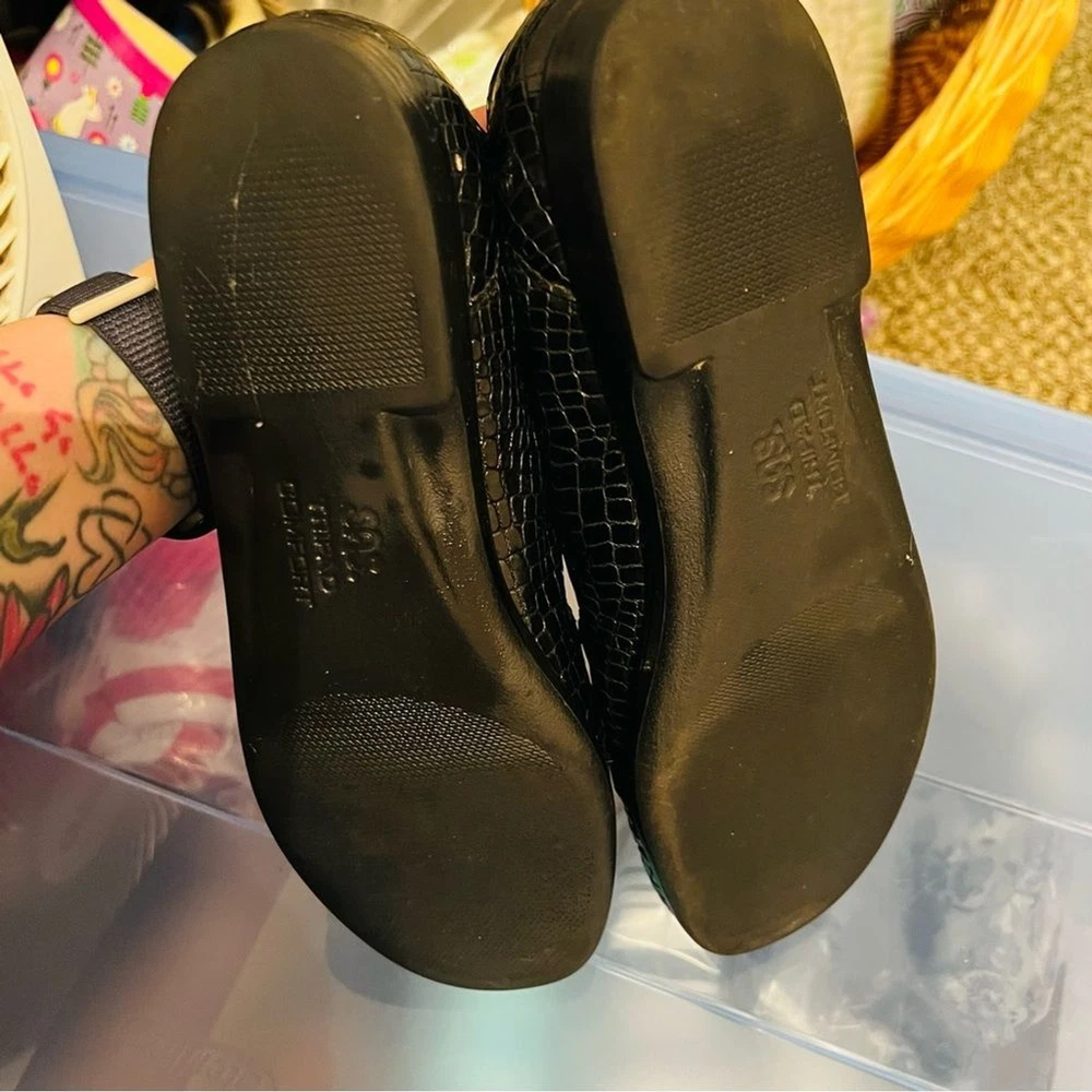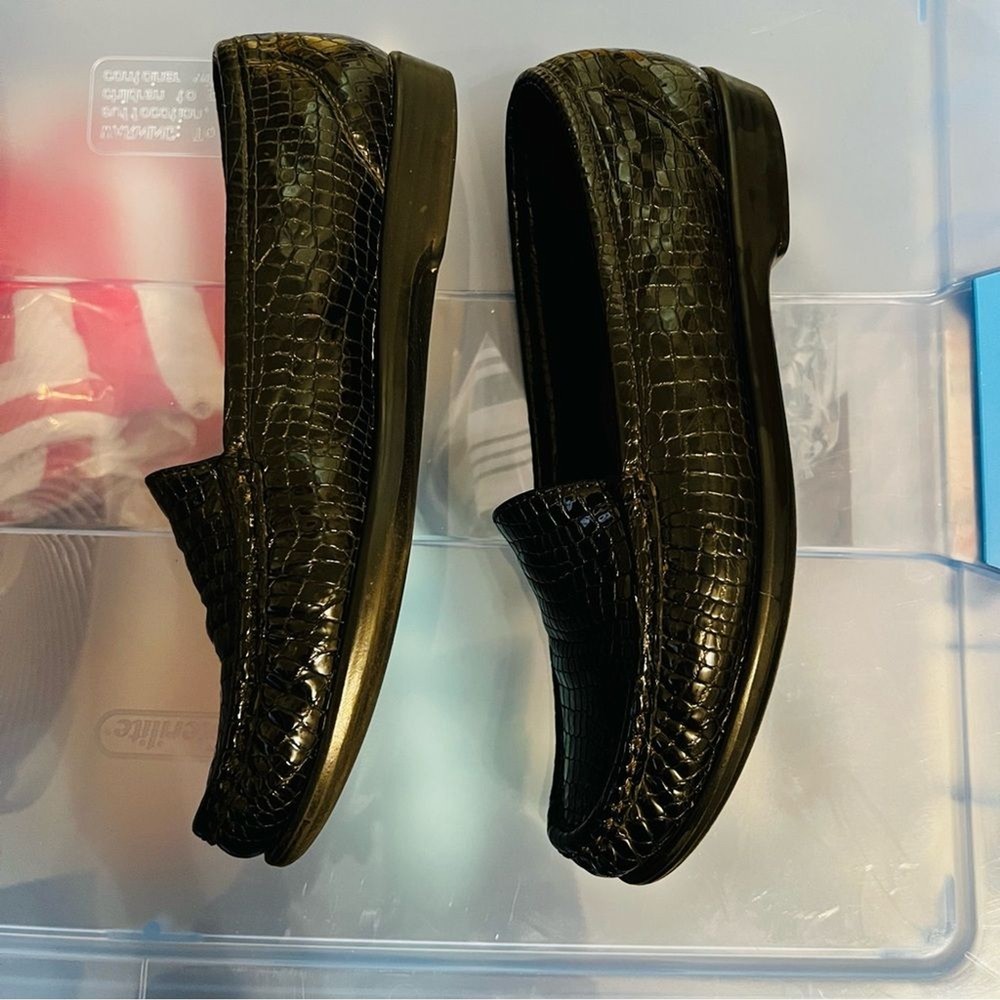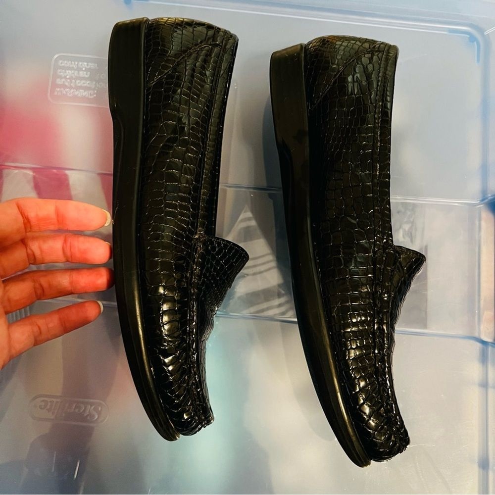 SAS Simplify Black Crocodile Embossed Leather Moccasin Loafers Size 8 Narrow Great condition, extremely comfortable. Removable insole. ABOUT ME: • I accept reasonable offers • Next business day shipping • New items posted daily • Smoke free home