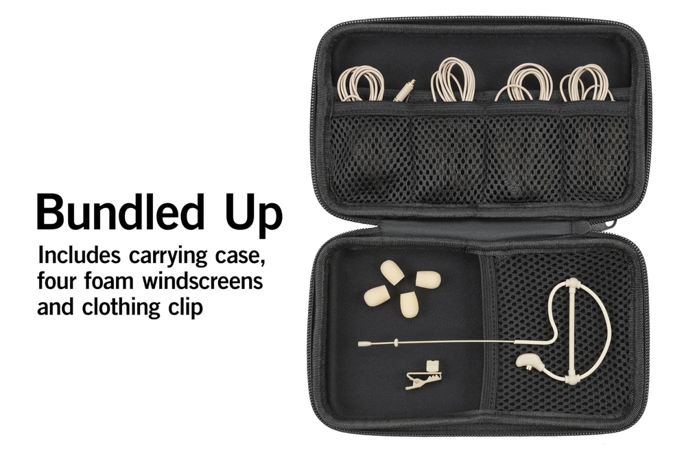 Product Description created the SE50x Omnidirectional Earset Microphone as a wearable microphone that is comfortable to wear, visually discreet, and that delivers outstanding audio performance. The earset can be quickly molded to slip over either ear, and the retaining band provides extra security. Once in place, the SE50x provides hands-free mobility for live stage, broadcast, conference, lecture, presenter, house of worship and fitness applications. Manufacturer Contact Information https://samsontech.com/contact/ Low-Profile Earset Microphone: The SE50x is a lightweight, low-profile earset microphone ideal for capturing clear vocals from live performances and broadcasts to presentations, houses of worship, fitness classes and more. Crystal Clear Vocals: Featuring a 2.5 mm miniature condenser microphone capsule for excellent audio reproduction and an omnidirectional design that captures sound evenly in all directions. Adaptable Connectivity: The SE50x includes four detachable adapter cables, making it compatible with most popular wireless systems from and other brands. Built to Last: The SE50x is built to last with a gold-plated connector, moisture-resistant coating, and stainless steel mesh grill - all of which achieve an IP65 rating for dust and water/sweat resistance. Complete Vocal Performance Kit: The SE50x comes with everything you need, including four windscreens to reduce wind noise, a collar clip for discreet cable management, and a protective carrying case.