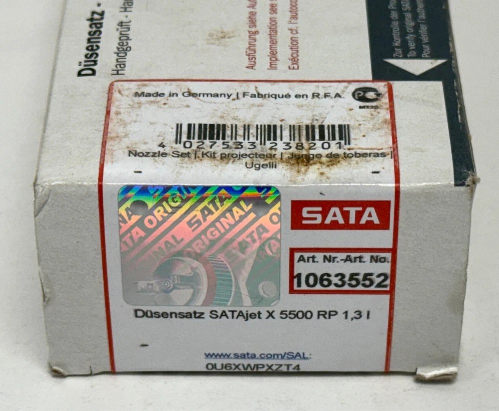 SATA 1063552 Nozzle Set 1.3 I for X5500 RP Paint Spray Gun - NEW BRAND NEW - SEALED IN BOX INCLUDED: all original items in set SERIOUS BIDDERS ONLY PLEASE!! NO INTERNATIONAL BIDDERS - CONTINENTAL US ONLY! PLEASE READ TERMS BELOW BEFORE BIDDING. ALL ITEMS ARE GUARANTEED AS DESCRIBED OR YOUR MONEY BACK! PLEASE READ THE TERMS AND CONDITIONS BEFORE BIDDING! AUCTION TERMS & INFORMATION Feedback: Before you leave a neutral or negative feedback, please contact us. Let us know what we can do to assist you further. We love our customers and we are here to make you happy! Returns: Returns are reviewed on a case by case basis unless marked "As-Is" or "No refunds or returns". These Items cannot be guaranteed for working or cosmetic condition. Returning NEW items that have been opened will be subject to a 10% restocking fee. Tax: 7% plus applicable county taxes for all sales must be collected in the state of FLORIDA. This includes items that are picked up locally. No exceptions. Payment Information: All payments should be received within 48 hours of the end of the auction. Shipping information: It is our goal to ship within 1 business day of receipt of payment. Weekend and holidays may occasionally cause delays. International Shipping information: Thank you for your interest in our products. We do not provide international shipping at this time. If you purchase this item through a third-party shipping company, please note that we are not responsible for any lost, broken or missing items that are shipped through a third-party shipping company. We can only guarantee items that are shipped directly to the customer.