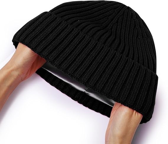 Soft Satin Lining: Protect your hair from the damaging effects of wind, sun, and cold with our satin-lined beanie. Satin is perfect for protecting hair because it doesn't absorb as much moisture or cause as much friction as other materials like wool and cotton. With this satin lined beanie, you don't have to worry about your hair getting messy when you take it off. Warm Winter Hat: Premium Quality Beanie is made of high quality stretchy acrylic and super soft silky satin insider liner. This beanie hat for women and men is strechable enough to make it stay on your head and won't fall off. Besides, you can pull the cuff of this beanie hat down to cover your ears for added warmth. One Size Fits Most: This winter beanie hat is made from highly stretchable materials, regardless of your head size or hairstyle, the good performance of elastic cable knitted outer and silk lining allows this beanie to accommodate accommodate most people. It's easy to put on and take off, pressure-free and comfortable to wear! Wide Application Hats: Simple style design, trendy, generous and cute beanie almost fits all of your clothes in the winter, suitable for both casual wearing in daily life and a variety of outdoor sports activities such as skiing, snowboarding, sledding, ice skating, toboggan, snowshoeing, running, cycling, hiking, camping and more. This knit beanie hat will keep your head and ears warm during cold weather. Great Gifts for Women Men: This beanie hat makes a perfect gift for your family, friends, and loved ones. Ideal practical gifts warm hats for women and men on birthday, Thanksgiving, Christmas, New Year, Valentine's Day, and more.