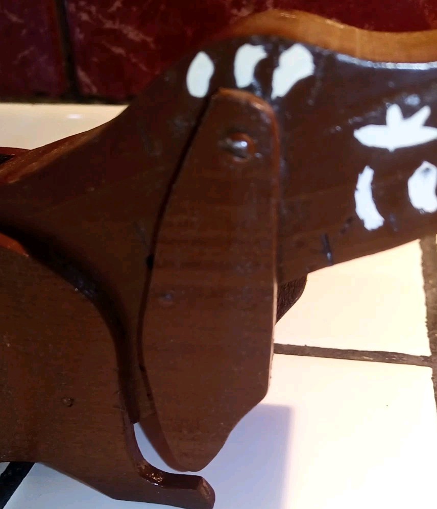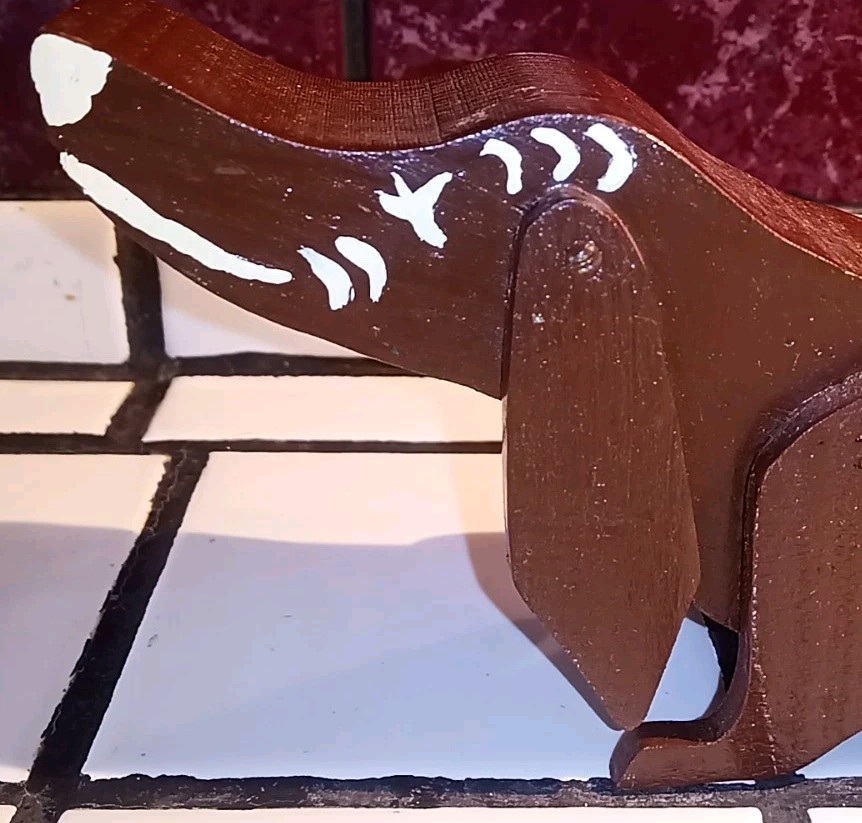 This vintage handmade wooden sausage dog planter, featuring a Dachshund design, is a charming collectible item crafted from wood, this planter is a unique and whimsical piece perfect for any dog lover's collection. The detailed craftsmanship and rustic appeal of this item make it a delightful addition to any home décor, adding a touch of nostalgia and canine charm.