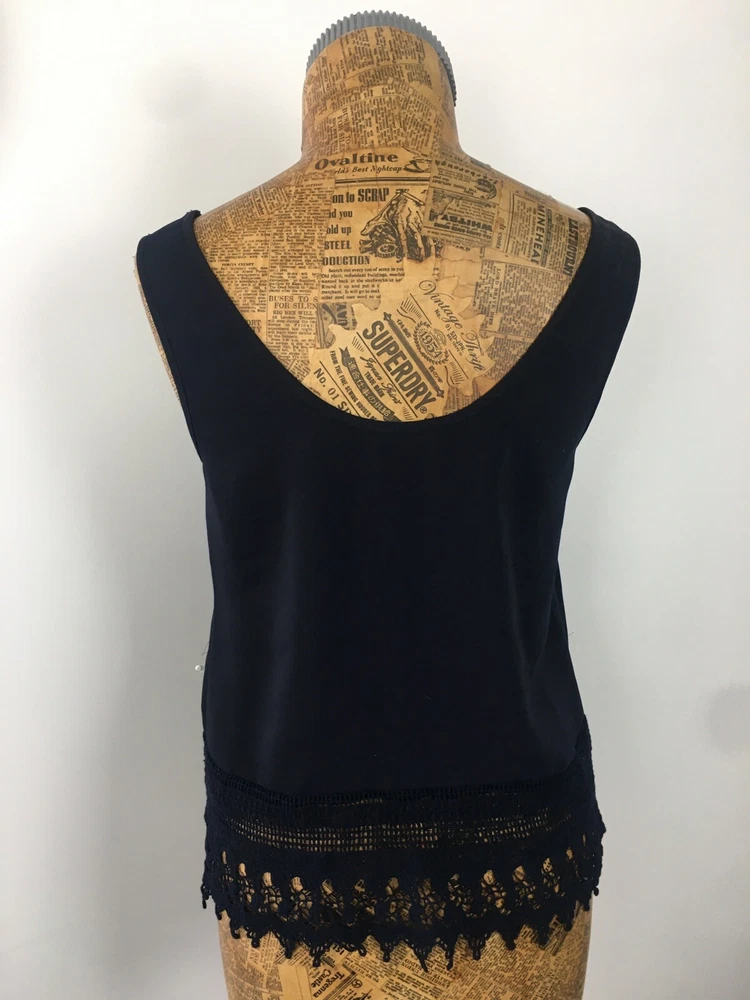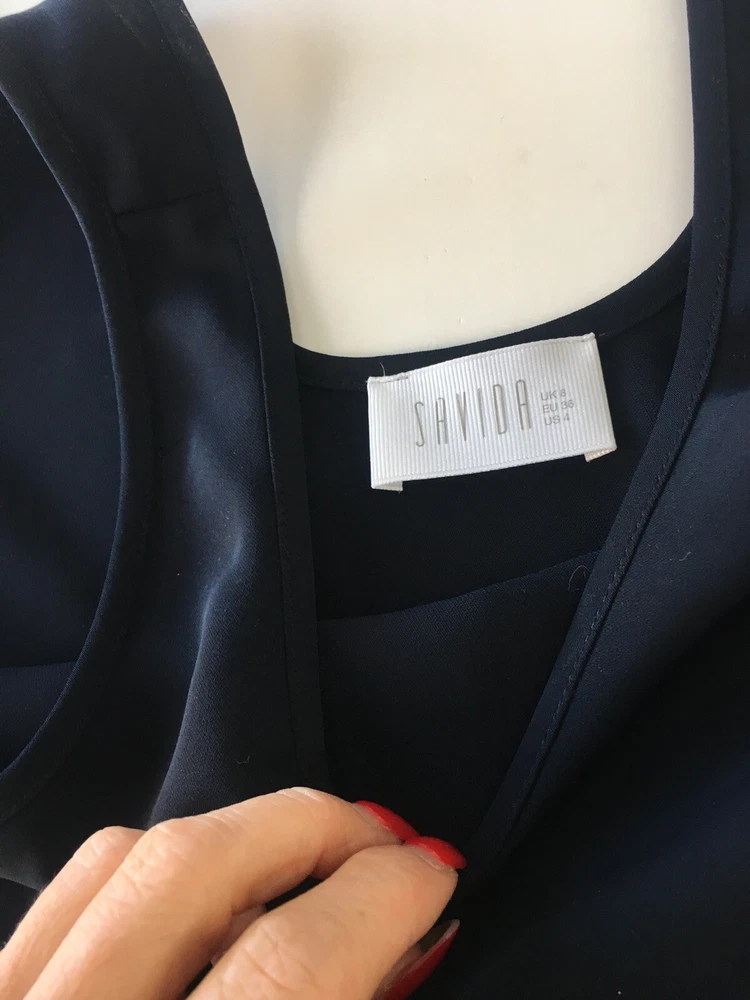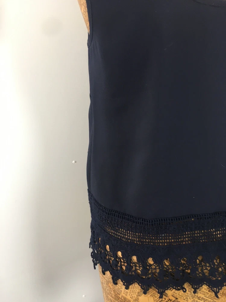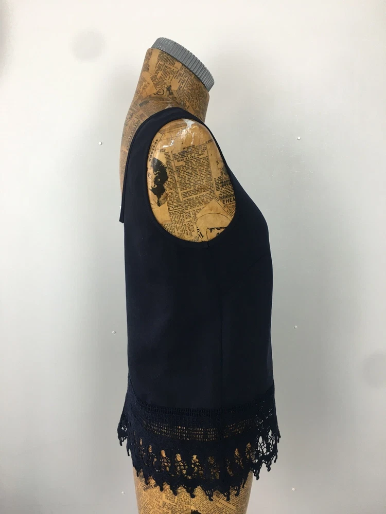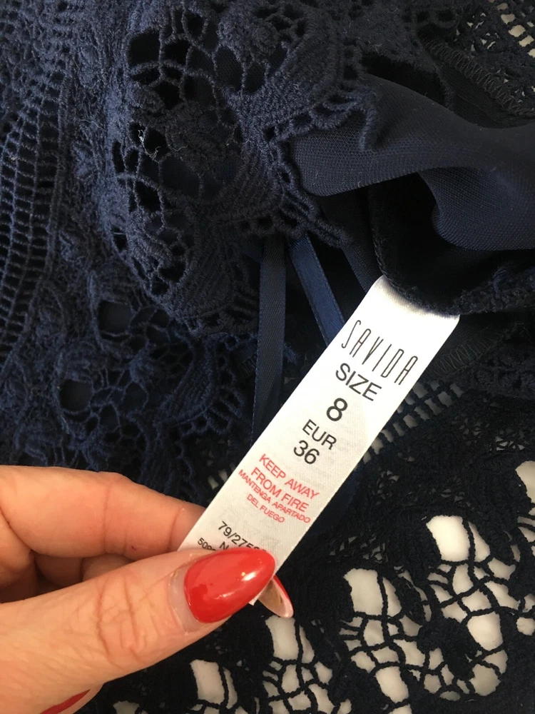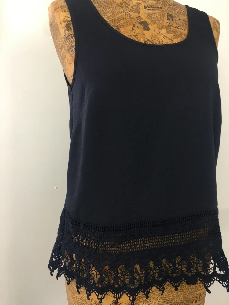 SAVIDA FRENCH NAVY VEST TANK TOP UK 8 light chiffon with crochet lace trim NEW without tags bought and unworn TRUE GARMENT SIZING GUIDE Different clothing manufacturers size charts vary considerably, in order to help you get the correct size first time we include images of our garments laid flat on a table and indicated measurements with a tape measure. This will include chest measurement with a width measurement across the pit to pit line and length from nape of neck under collar area to lower front hem . We recommend that you compare this with a similar style garment that fits you well. POSTAGE We dispatch promptly within one working day of sale and offer same day dispatch to orders placed before 10am. Postage is free of charge however we also a premium postage upgrade of Royal Mail express for an additional cost please select this option when placing your order at check out.