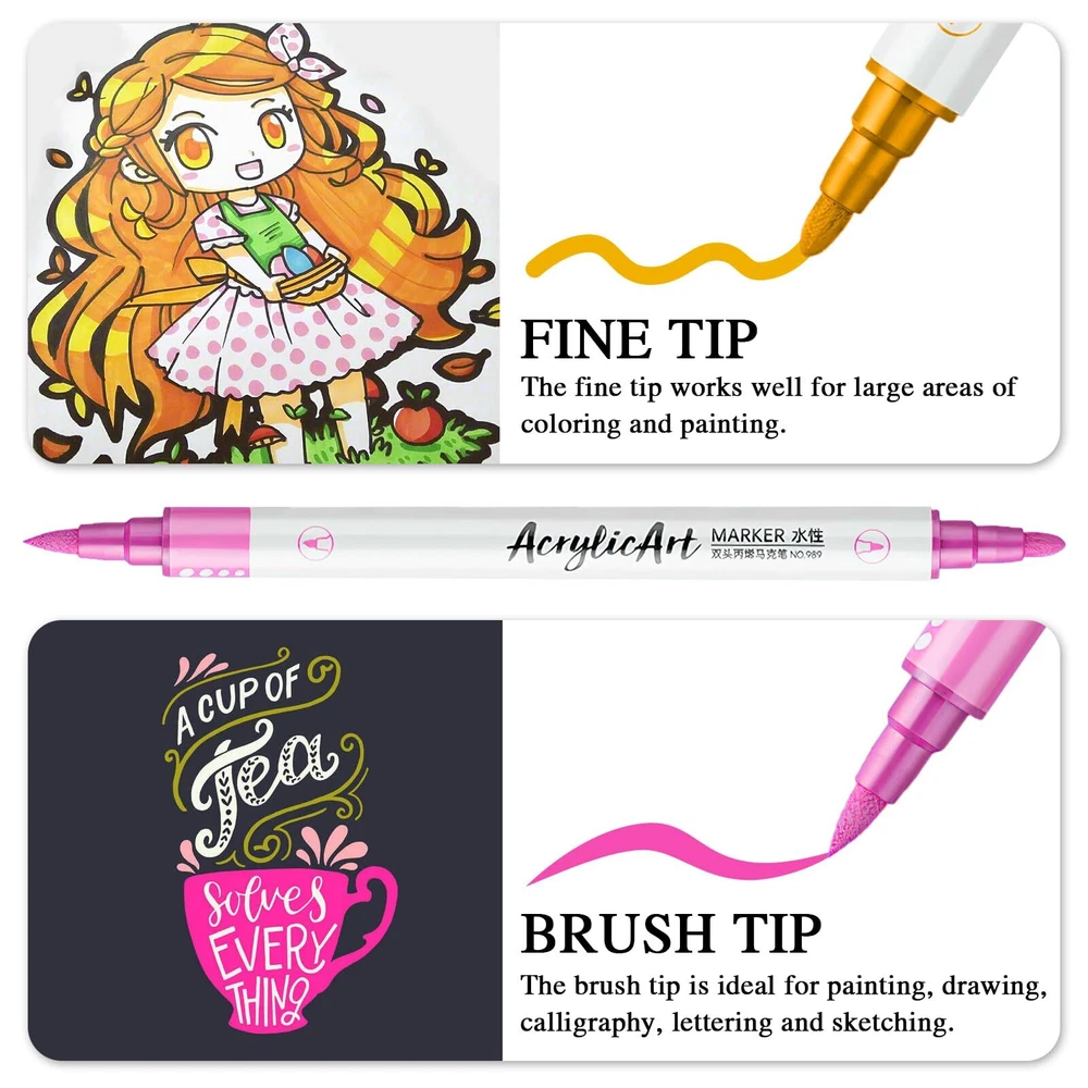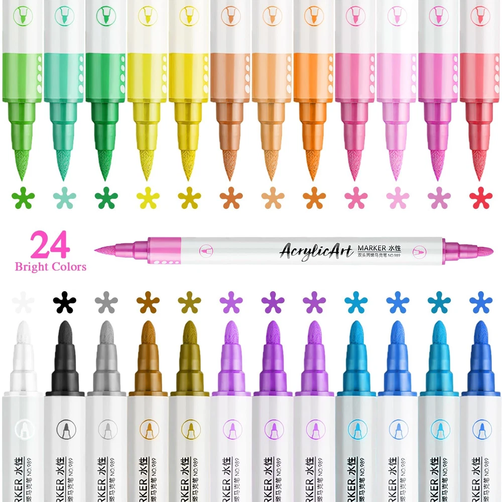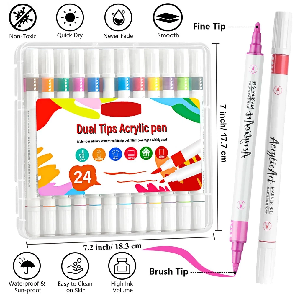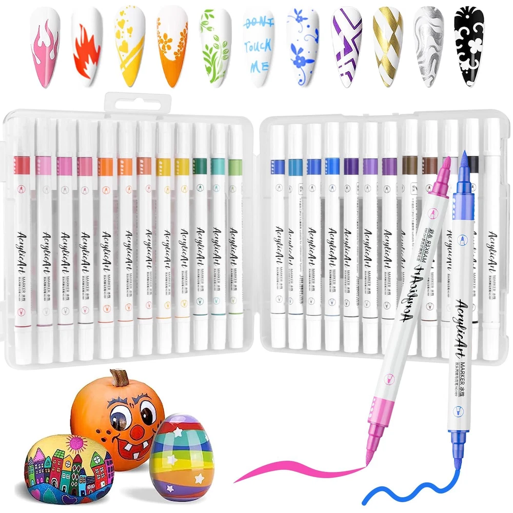 SAYEEC Acrylic Paint Pens, 24 Colors Dual Tip Nail Art Polish Pens with Fine ...