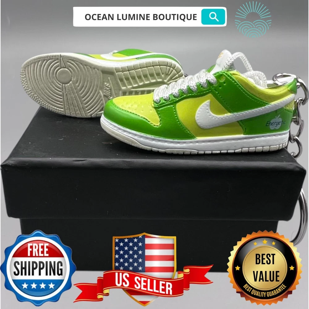 PLEASE READ BEFORE YOU PURCHASE You get the style in the very first pic, if you searching for more styles plz visit my page This is the best quality you can get, many other cheaper ones have poor quality, I know all the factories trust me, some really be making crap and you can not tell from the pictures. Handcrafted and hand-painted 3D Mini Sneaker Keychains inspired some of the most coveted sneakers ever produced Materials as ABS Plastic (Soft Plastic) Jordan pin color will be given randomly (If chosen) All Shoe keychain size is about 2 1/2 (L) x 1" (W) x 2" (H) The shoe Tongue is movable, it is not cracked or broken. Random shoe box styles will be given, if you have a preference please get in touch with me. These are all handmade and hand-painted with better paint, if you want to find a lower price please seek lower quality, my key chains are the best quality you can find. We've been selling these key chains for 3+ years, and have the most styles & best quality with super fast shipping. Search OCEAN LUMINE BOUTIQUE on any search engine to visit us! CLICK ME FOR MORE STYLES Disclaimer Product packaging, specifications, and prices are subject to change without notice. All information about the products is provided for information purposes only. Please always read labels, warnings, and directions provided with the product before use. Shipping We will ship all orders within 2 business days of payment, we provide free upgrade USPS shipping service up to 2-DAY Priority if Urgent Contact We can be contacted at any time through eBay messages if you have any questions, comments or product requests. We will respond to you within 24 hours and do our best to help you out! Features and further details 3000+ keychains in stock with up to 400+ styles We do bulk orders with discounts and provide long-term business relationships More styles are available in my shop PP WORLD