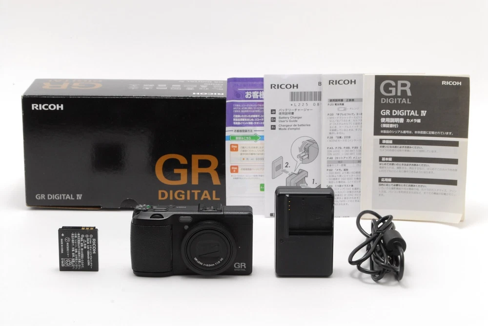 SC 3658![NEAR MINT w/Box] RICOH GR DIGITAL IV 10.4MP Compact Digital Camera JAPAN Description Total Condition NEAR MINT Serial Number 0010477 Appearance There are minor scratches and paint peels. LCD has a slight scratch. There is no hot shoe cover. The grips have shifted and glue is visible, but the rubber has not been removed. (Check the second, fourth, fifth, and sixth photos carefully). It shows signs of use. * Please check photos. Optics