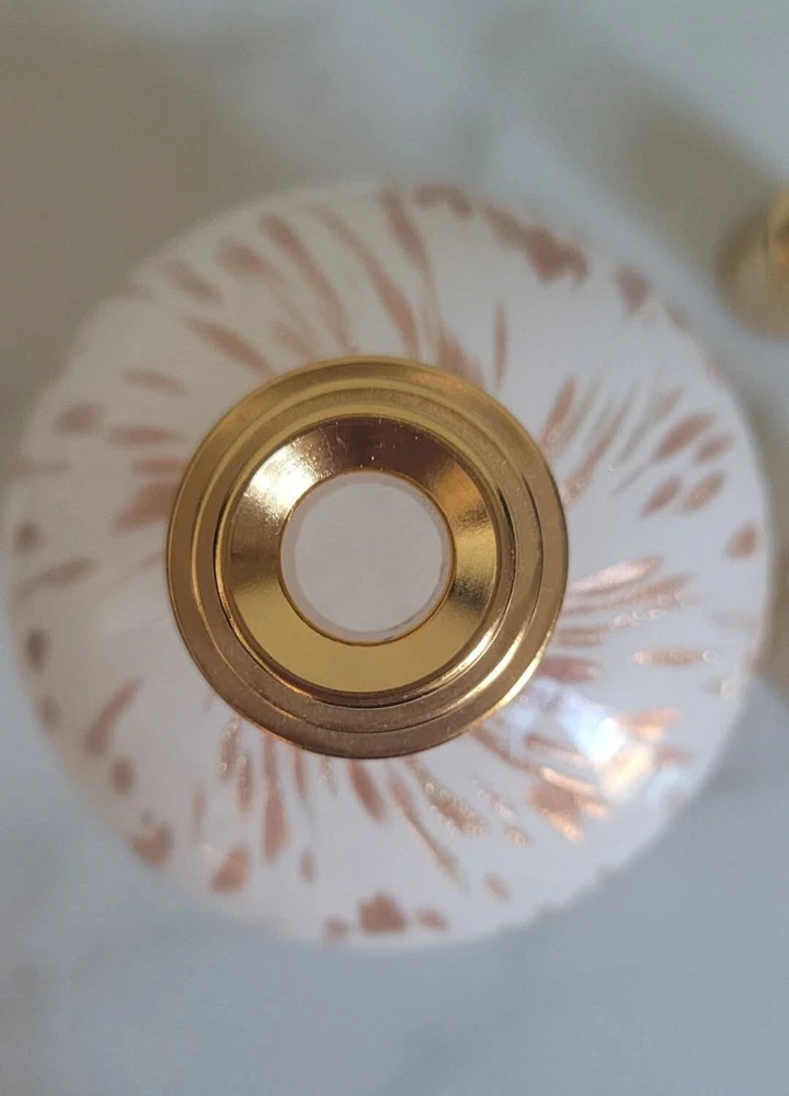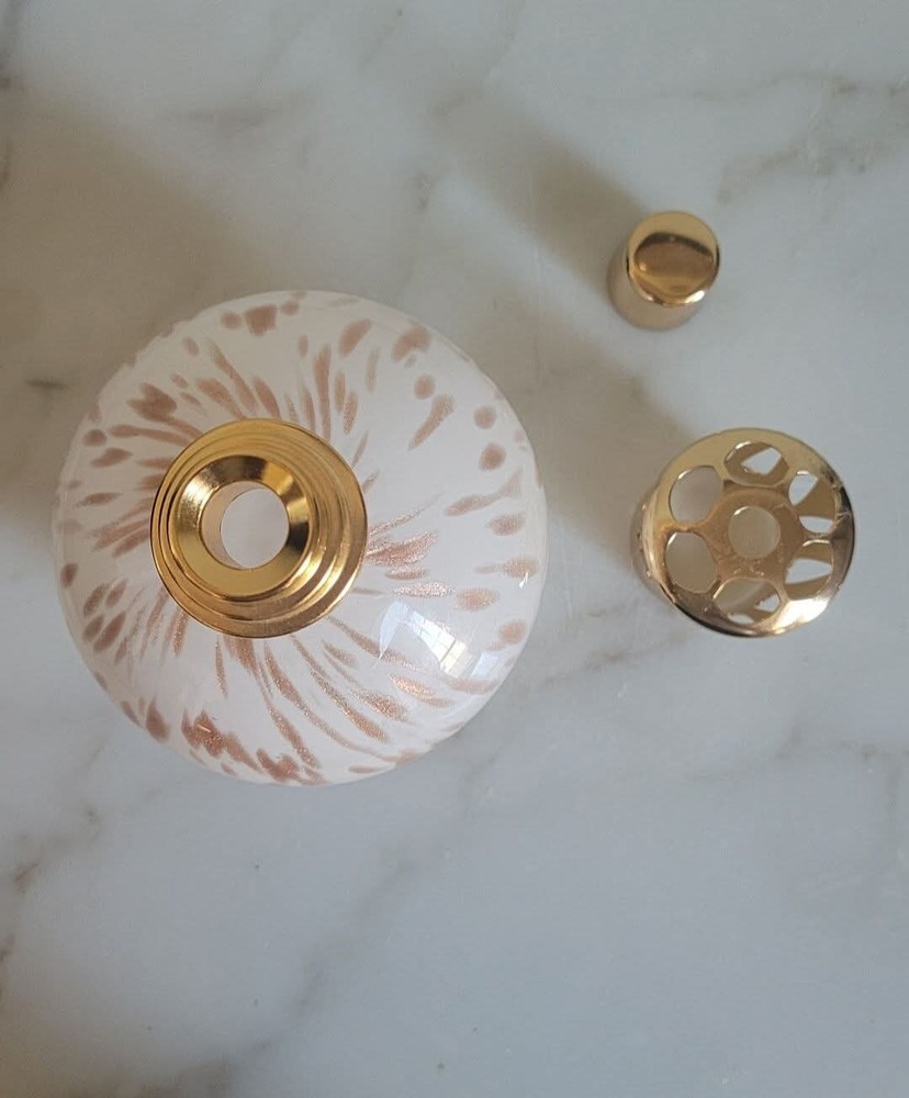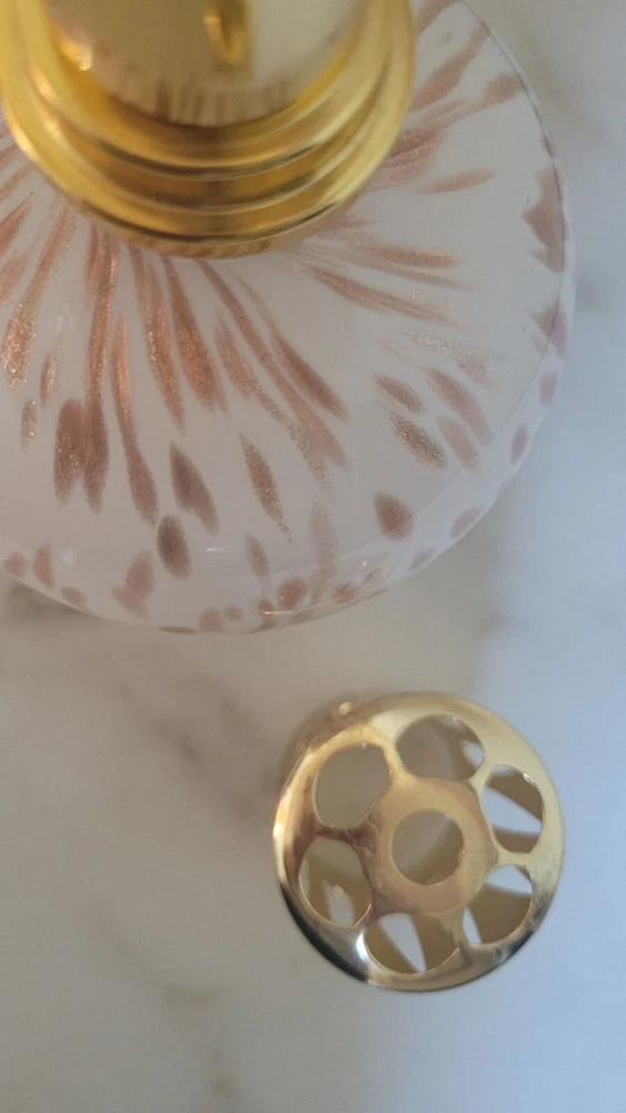 The Scentier White Copper Gold Swirl Glass Oil Lamp Diffuser is a rare and retired home fragrance item. Made from glass with a unique swirl pattern in white, copper, and gold colors, this oil diffuser adds a touch of elegance to any room. Designed for adults, this diffuser by Scentier is both stylish and functional, providing a pleasant scent throughout your home. This is an unused item in perfect new condition without box. E- mail me with questions. Thanks for checking out my auctions!