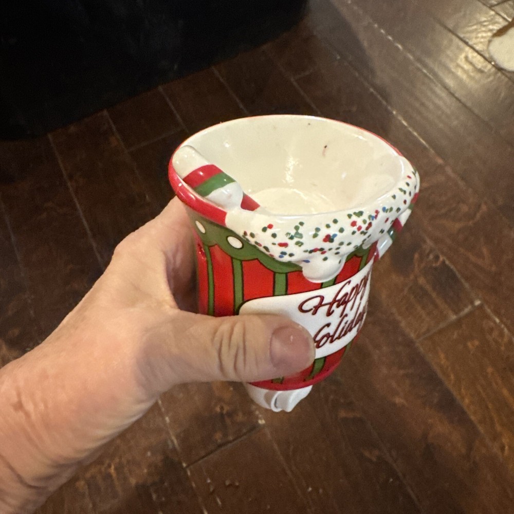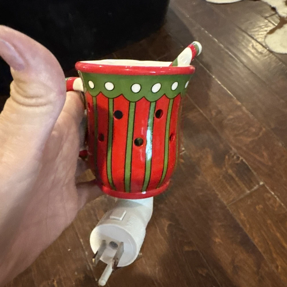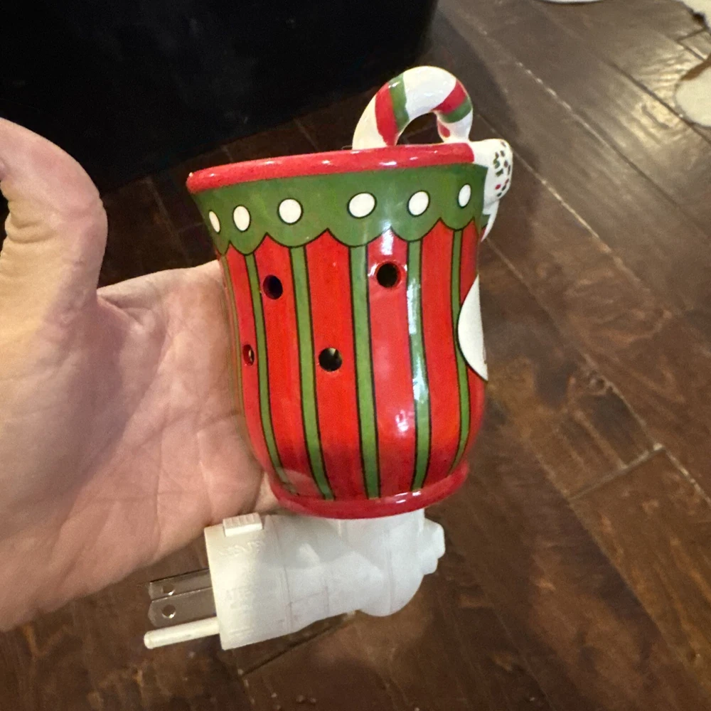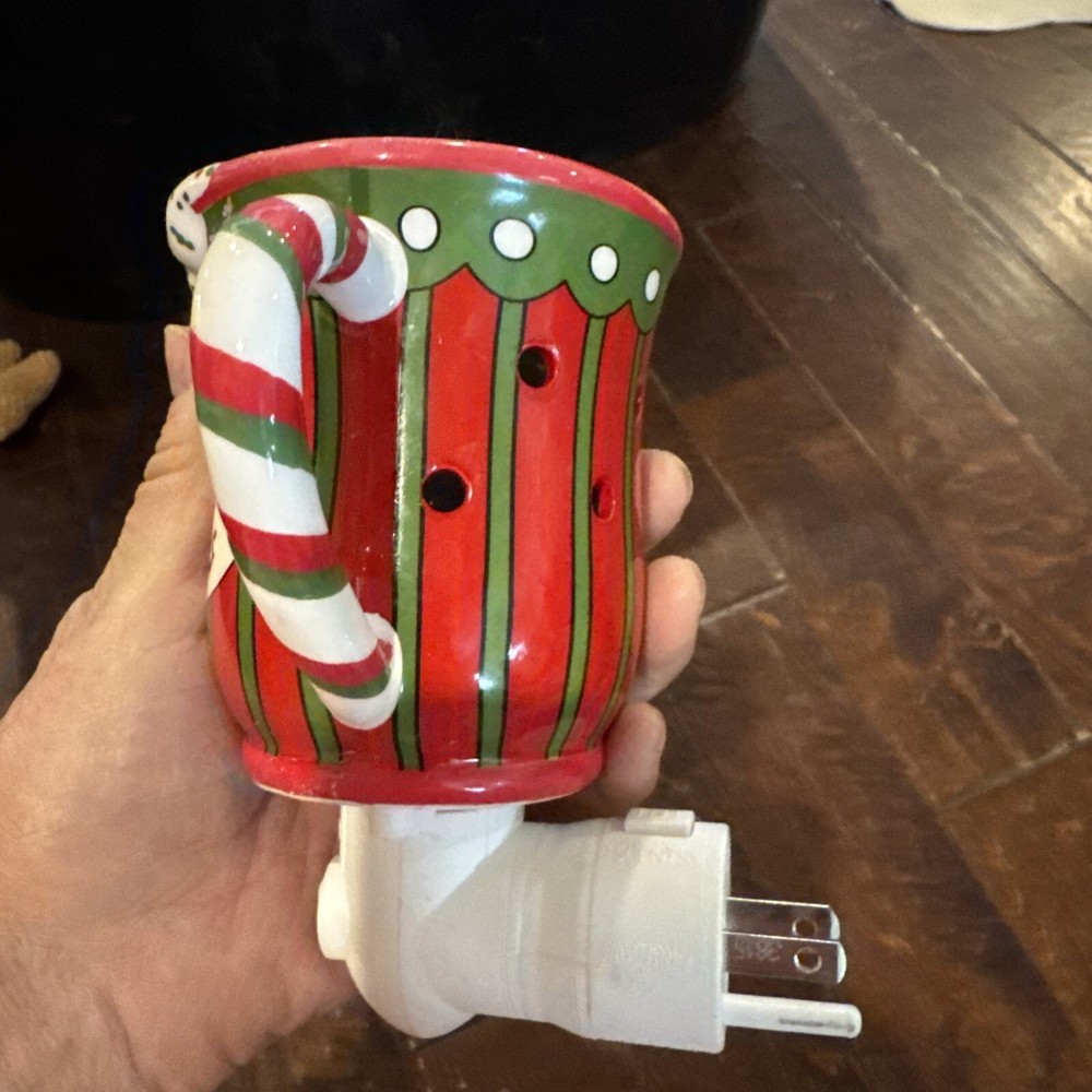The Scentsy Happy Holidays Candy Cane Mug is a small electric wax warmer designed to plug into the wall. This festive multicolor wax warmer features a bowl shape and stands at 4" tall. It is perfect for Christmas occasions and emits a holiday scent, making it ideal for adding a cozy and seasonal touch to any room in your home. Made of wax material, this Scentsy warmer is branded by Scentsy and is part of the Happy Holidays collection, adding a cheerful and fragrant ambiance to your living space.