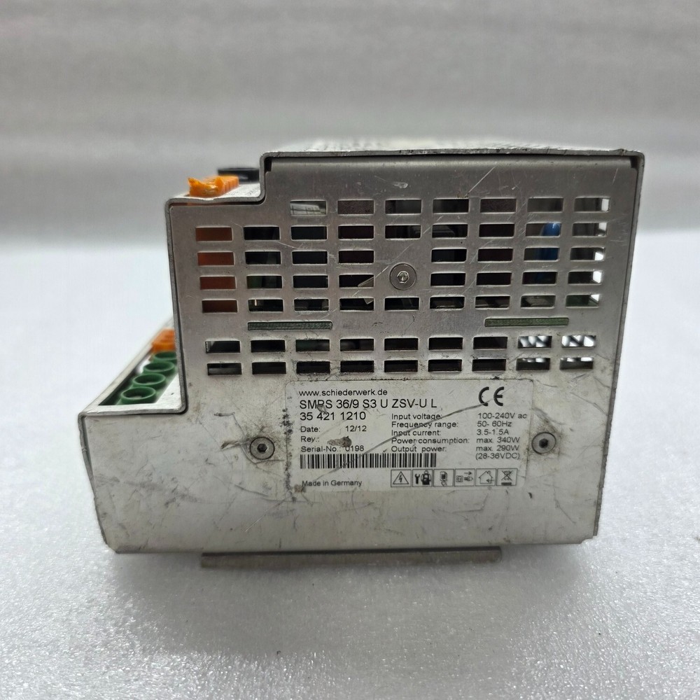 We are pleased to offer SCHIEDER WERKE SMRS 36/9 S3 U ZSV-U L POWER SUPPLY 354211210 KLS MARTIN Product Detail: SCHIEDER WERKE SMRS 36/9 S3 U ZSV-U L POWER SUPPLY 354211210 KLS MARTIN MODEL: SMRS 36/9 S3 U ZSV-UL PN: 35 421 1210 Shipment processing time: All orders are processed within 1-2 business days. Orders are not shipped or delivered on weekends or holidays. Shipment confirmation & Order tracking: You will receive a Shipment Confirmation email once your order has shipped containing your tracking number(s). The tracking number will be active within 24 hours. Customs, Duties and Taxes: We are not responsible for any customs and taxes applied to your order. All fees imposed during or after shipping are the responsibility of the customer (tariffs, taxes, etc.). Damages: In case of damage or lost of shipment during transit, We will investigate the matter and provide the satisfactory resolution. Returns Policy: We offer return or exchange of ordered item up to 30 days of receipt of goods in subject to certain condition. In case of damaged goods we shall offer the replacement or refund for the ordered item. If you require any more details, request you to send us the direct message through eBay for early resolution. Thanks