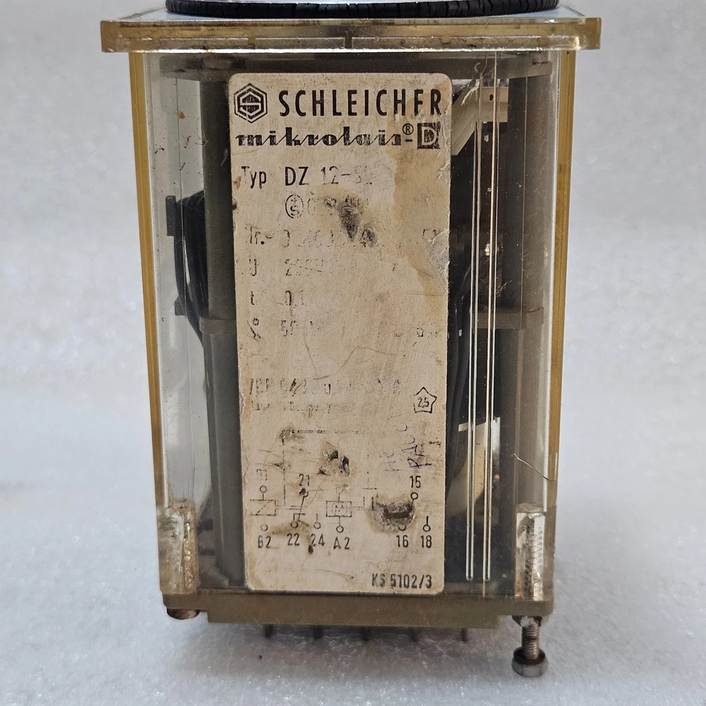 We are pleased to offer SCHLEICHER MIKROLAIS-D DZ 12-3 ADJUSTABLE TIME RELAY TIMER Product Detail: SCHLEICHER MIKROLAIS-D DZ 12-3 ADJUSTABLE TIME RELAY TIMER BRAND: SCHLEICHER SERIES: MIKROLAIS-D MODEL / TYPE: DZ 12-3 DEVICE TYPE: ELECTROMECHANICAL TIME RELAY / TIMER TIMING RANGE: APPROX. 0 – 3 SECONDS (ADJUSTABLE DIAL) TIME UNIT: SECONDS Shipment processing time: All orders are processed within 1-2 business days. Orders are not shipped or delivered on weekends or holidays. Shipment confirmation & Order tracking: You will receive a Shipment Confirmation email once your order has shipped containing your tracking number(s). The tracking number will be active within 24 hours. Customs, Duties and Taxes: We are not responsible for any customs and taxes applied to your order. All fees imposed during or after shipping are the responsibility of the customer (tariffs, taxes, etc.). Damages: In case of damage or lost of shipment during transit, We will investigate the matter and provide the satisfactory resolution. Returns Policy: We offer return or exchange of ordered item up to 30 days of receipt of goods in subject to certain condition. In case of damaged goods we shall offer the replacement or refund for the ordered item. If you require any more details, request you to send us the direct message through eBay for early resolution. Thanks