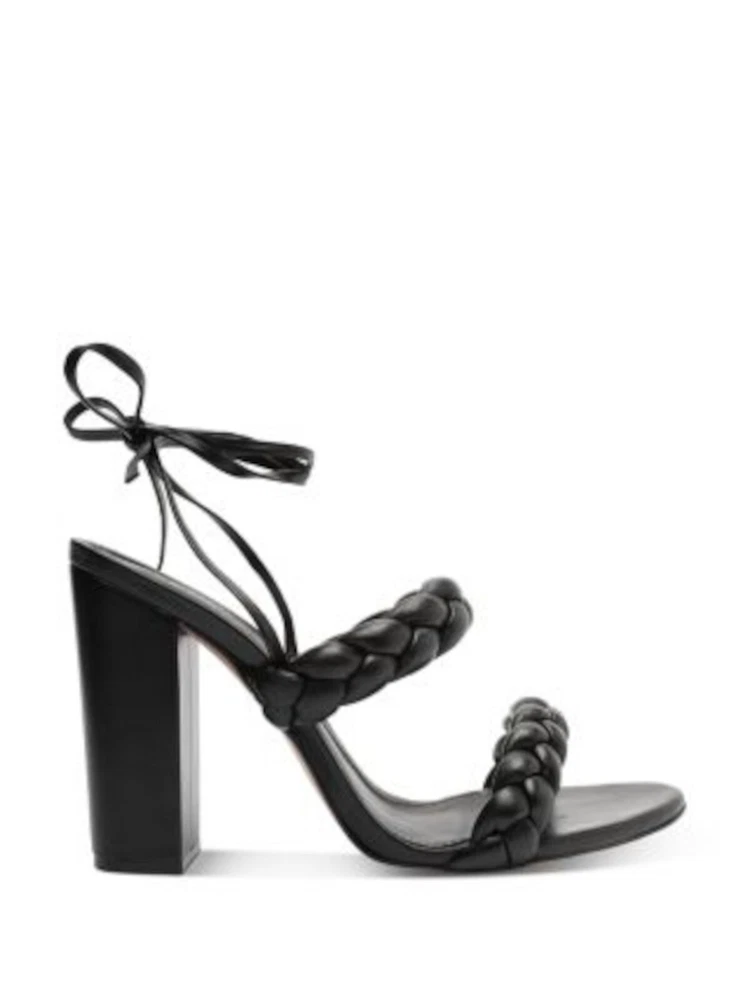 SCHUTZ Womens Black Wrapping Ankle Zarda Open Leather Heeled Sandal 6.5 B
