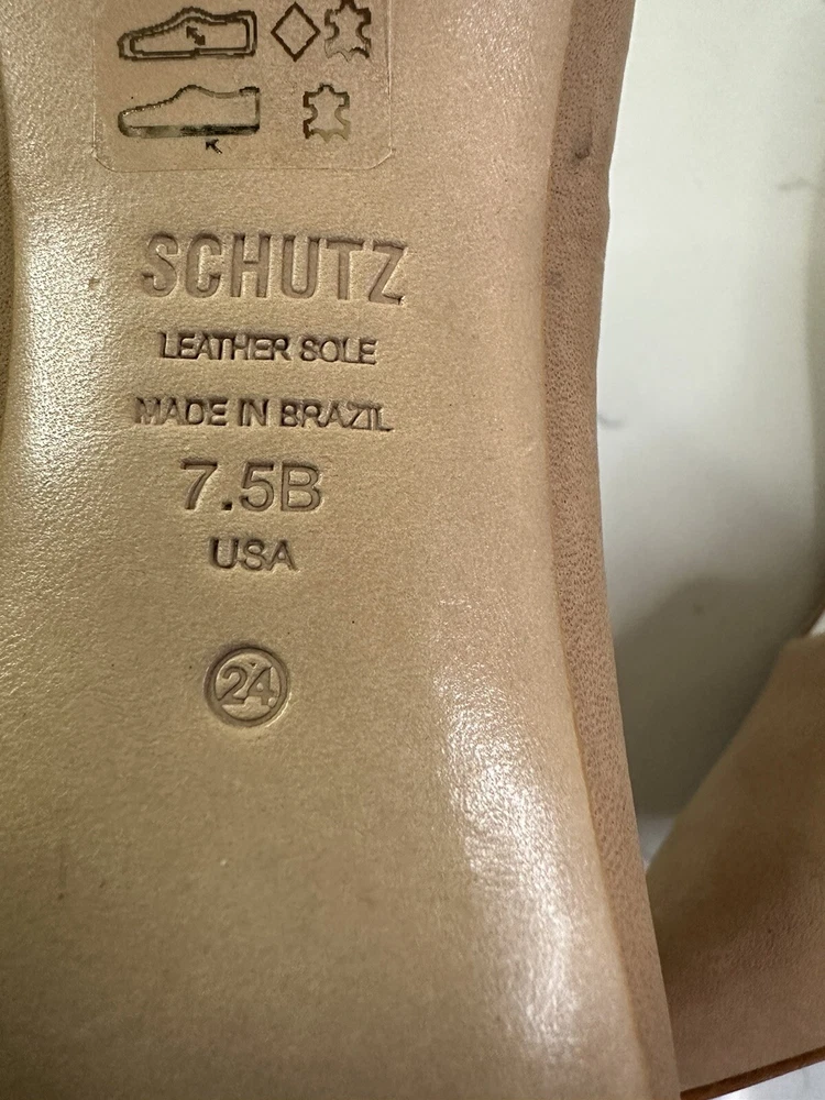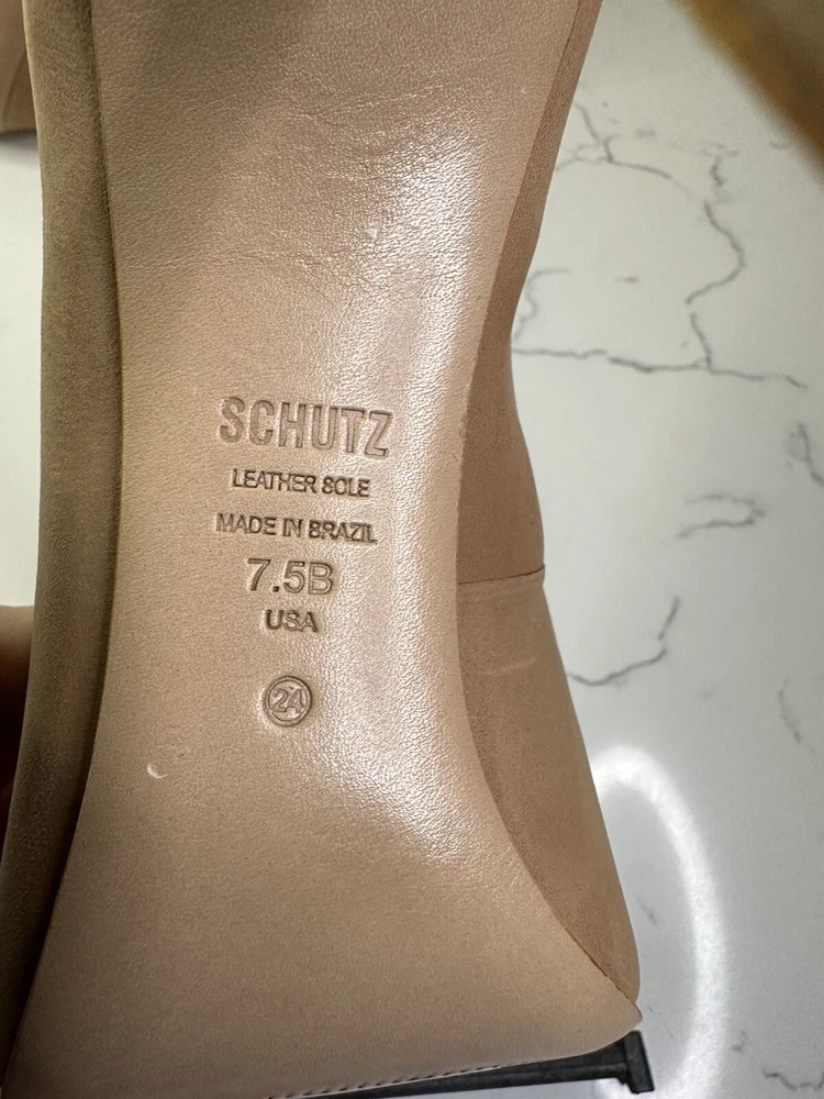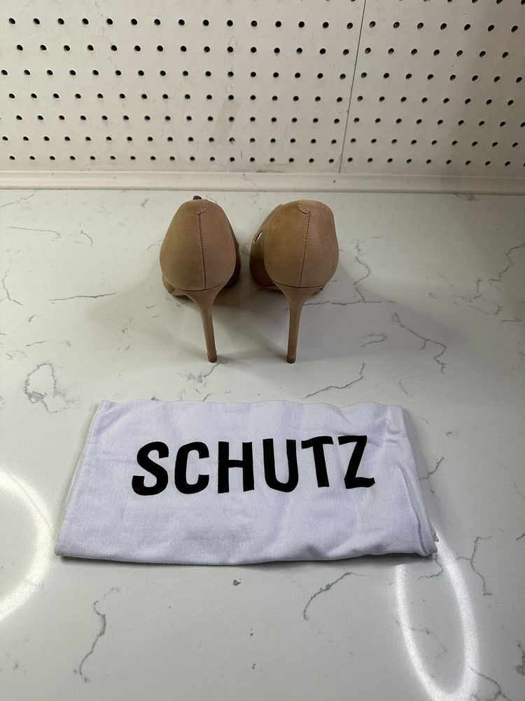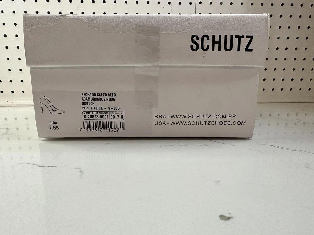 Department: Women gtin13: 7909612067988 Style: Pump UPC: 7909612067988 Shoe Width: B Upper Material: Suede US Shoe Size: 7.5 Toe Shape: Pointed Toe Brand: Schutz Color: Honey Beige Type: Heel